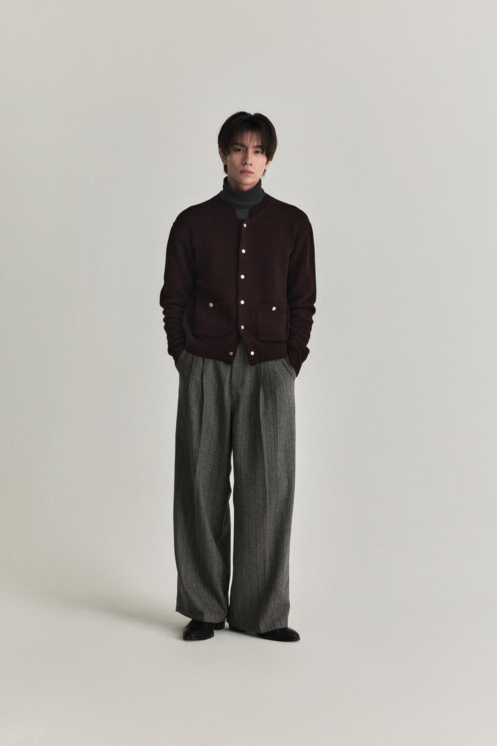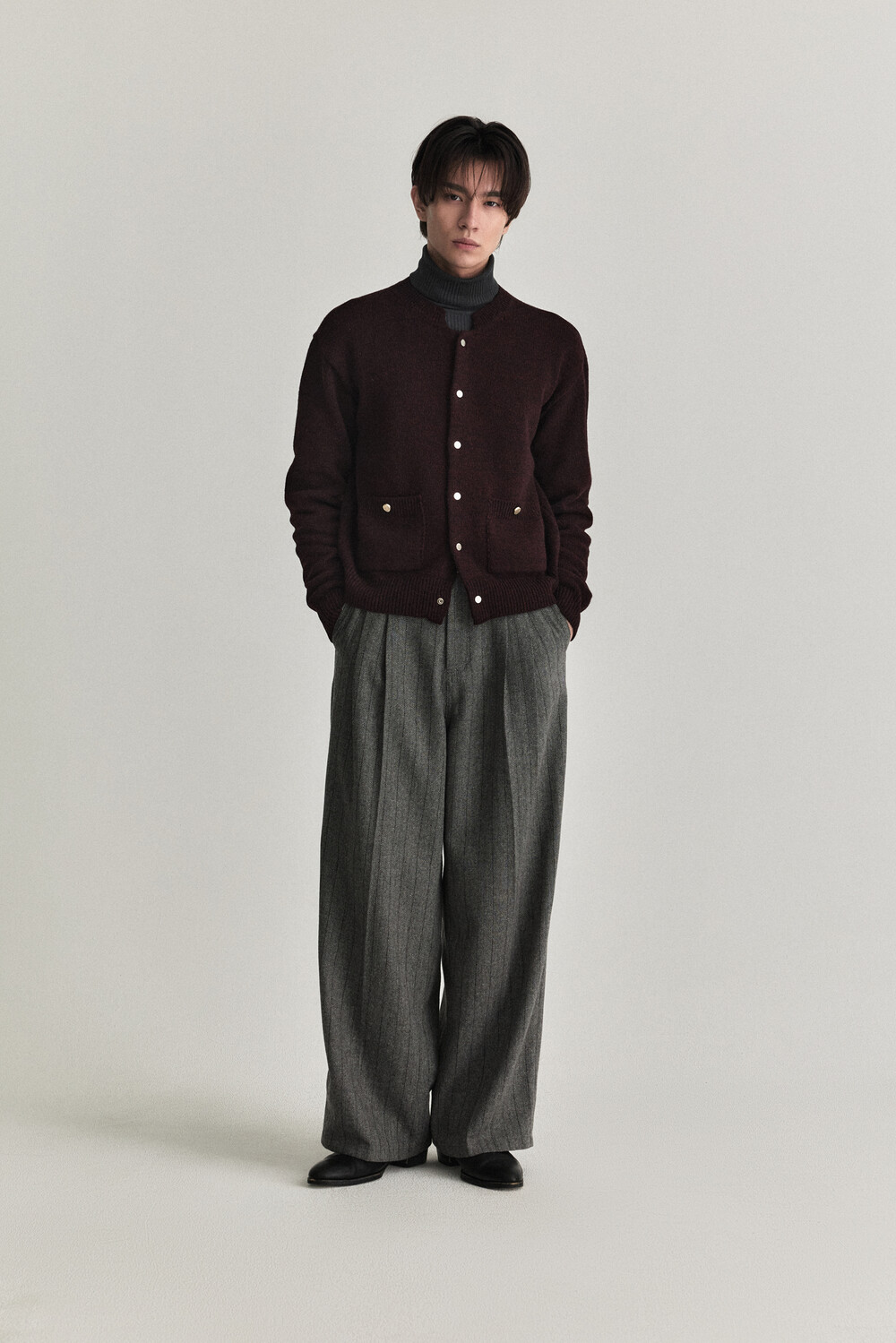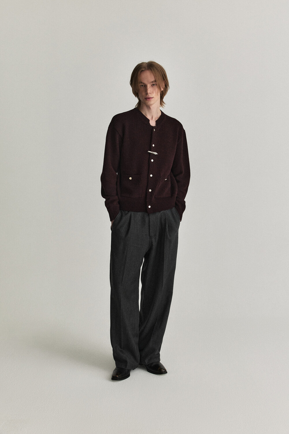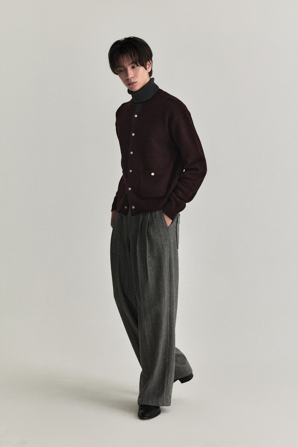 - 울 혼용 니트 패브릭으로 제작된 바시티 형태의 니트 가디건