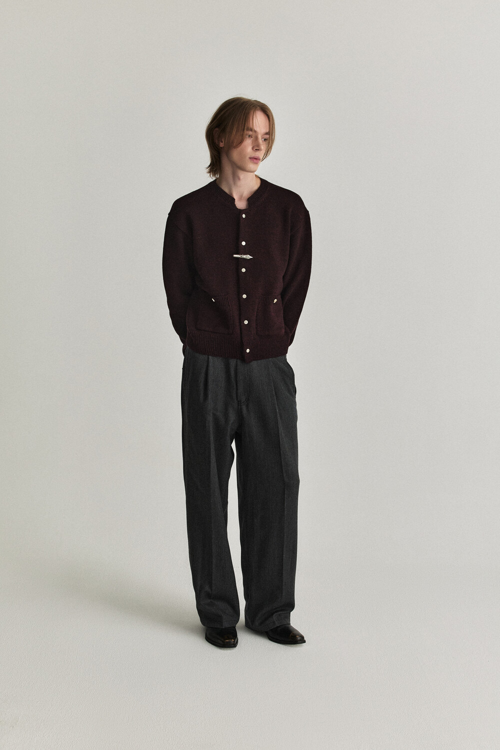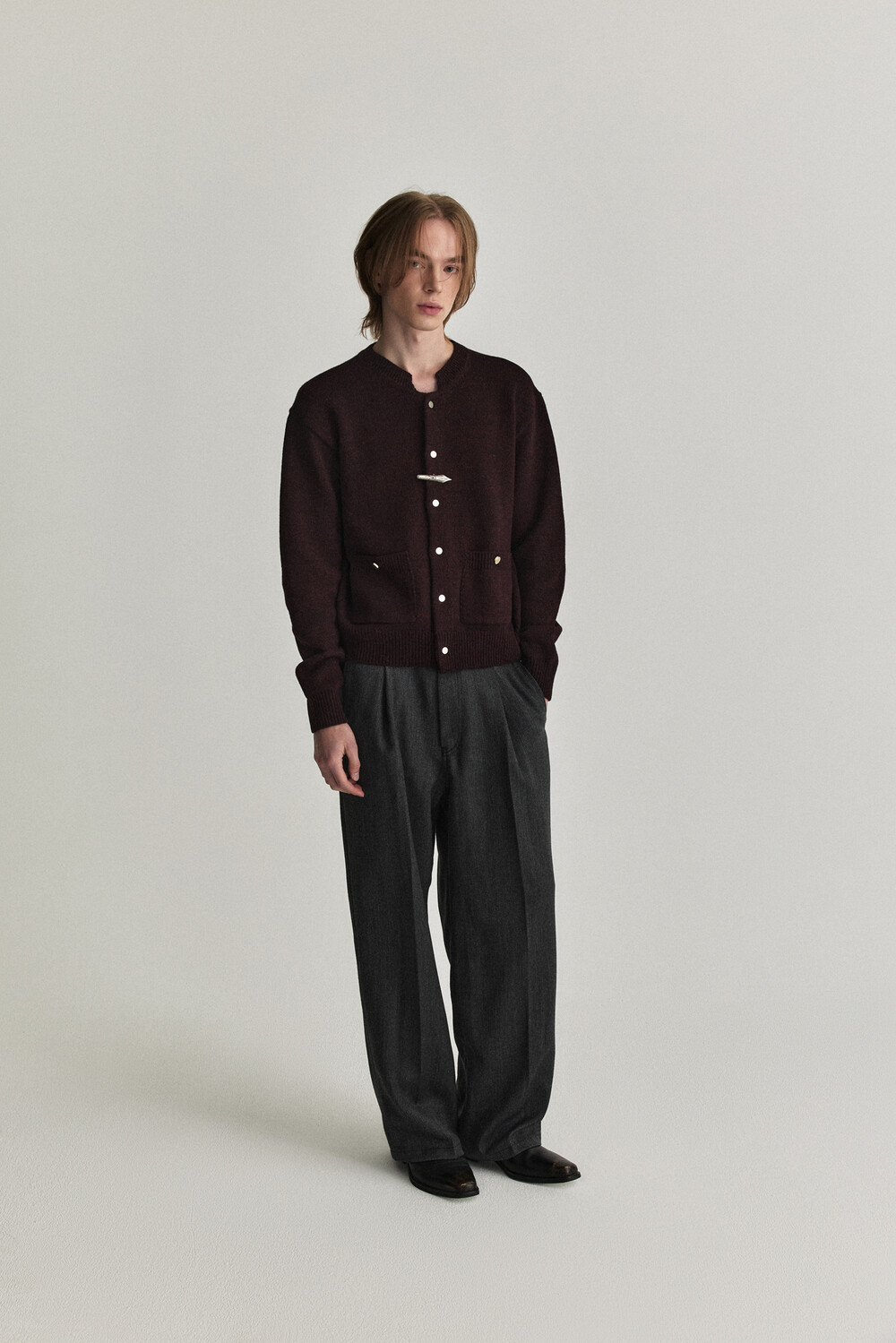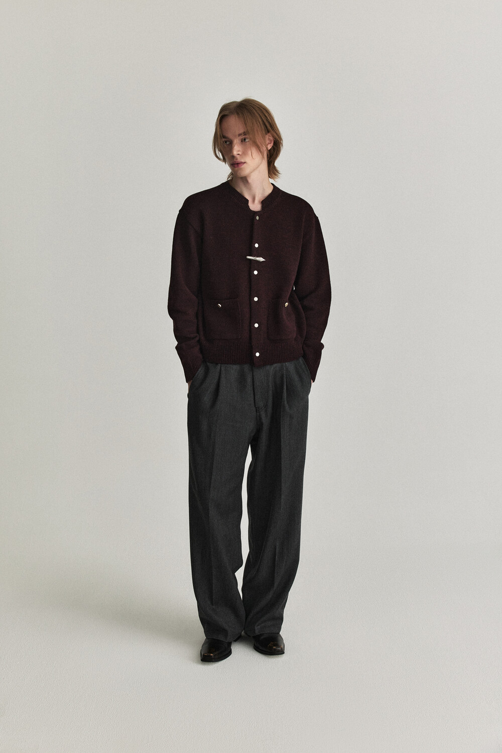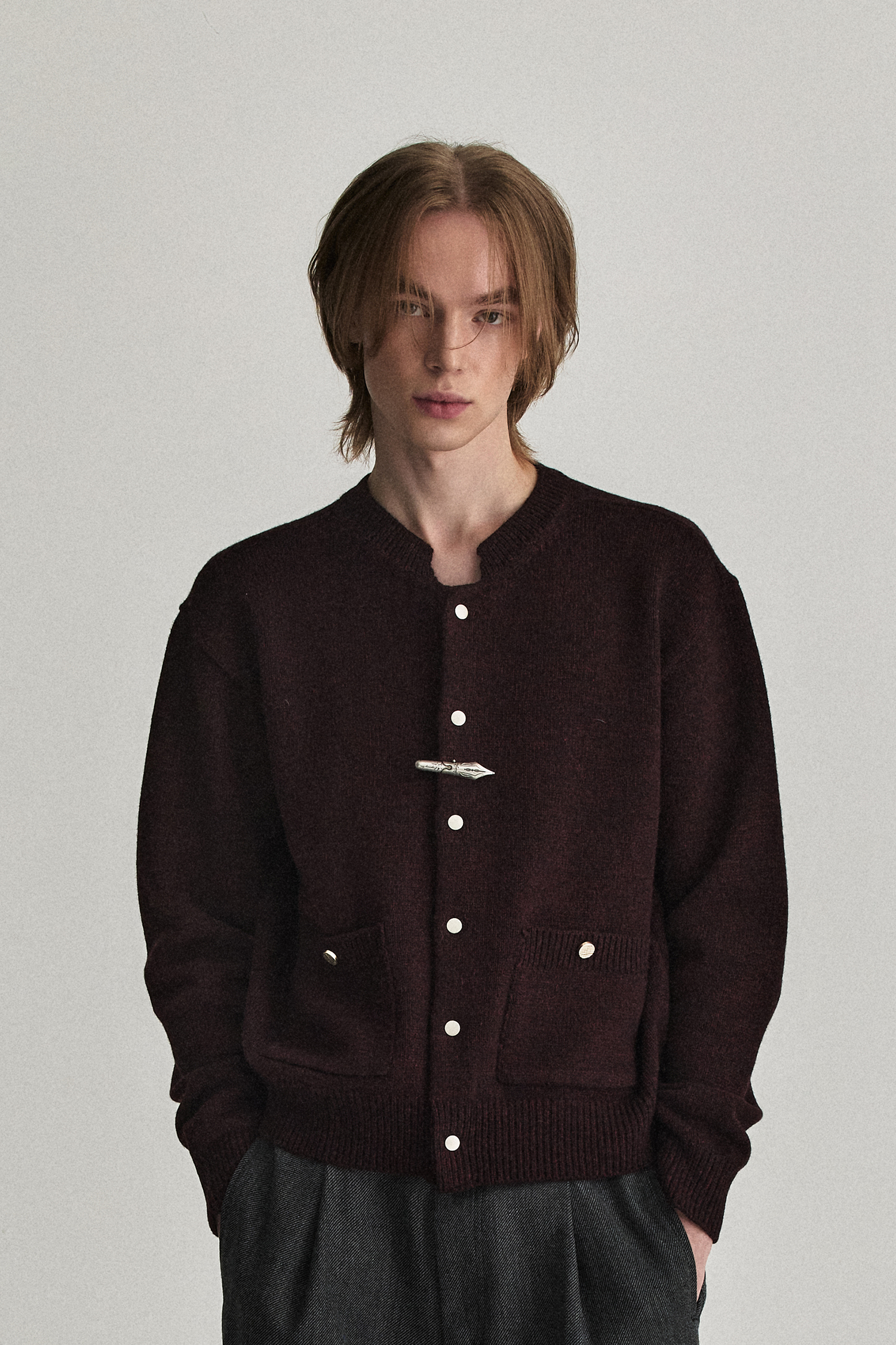 - 울 혼용 니트 패브릭으로 제작된 바시티 형태의 니트 가디건