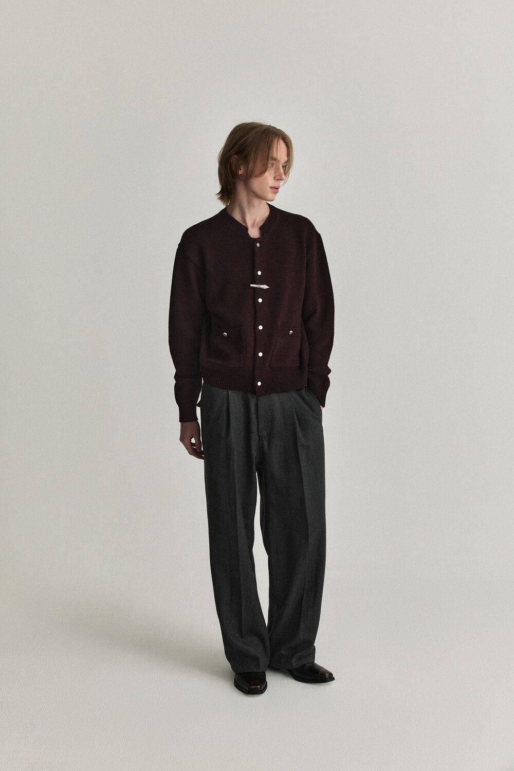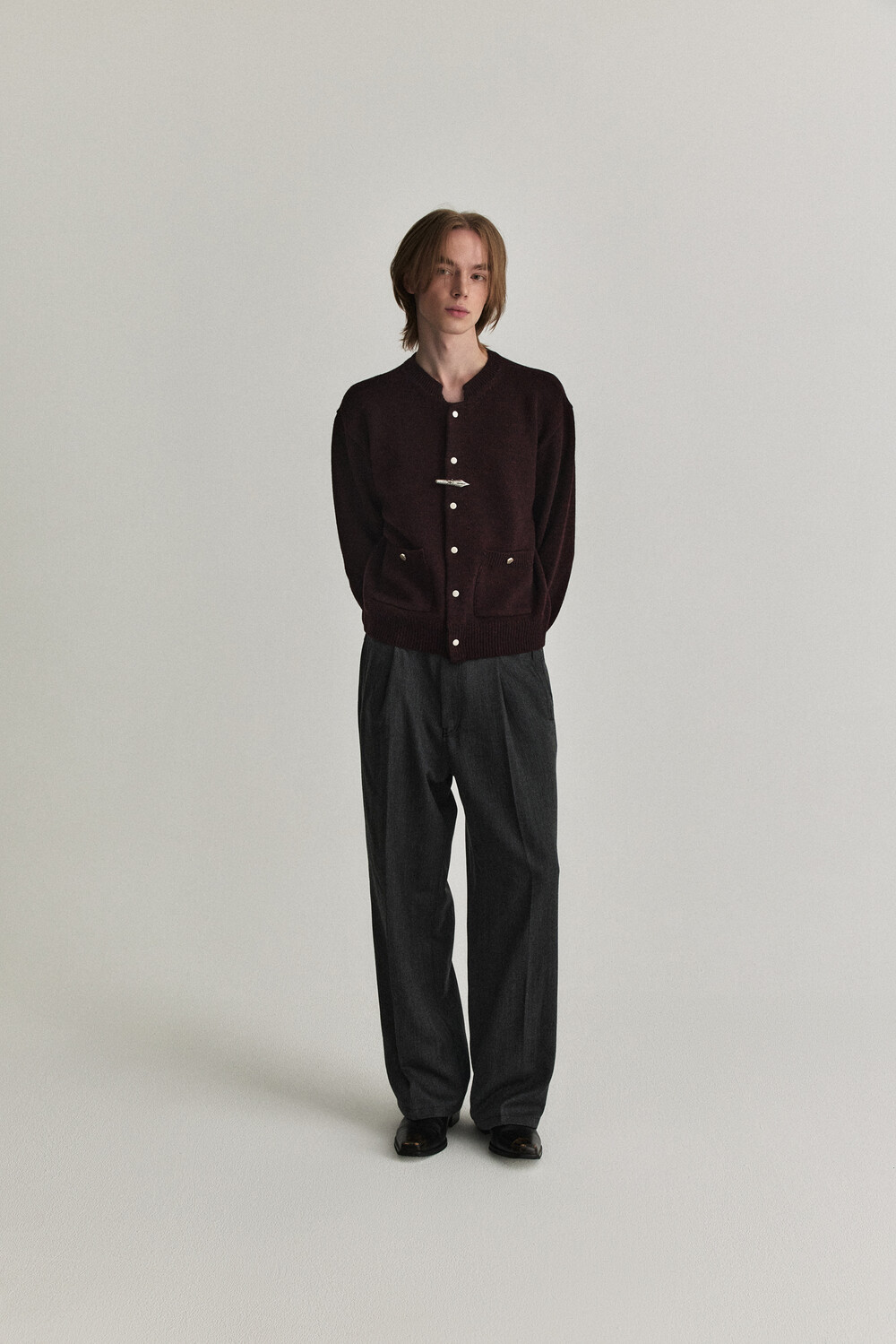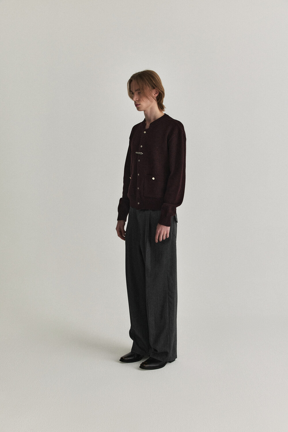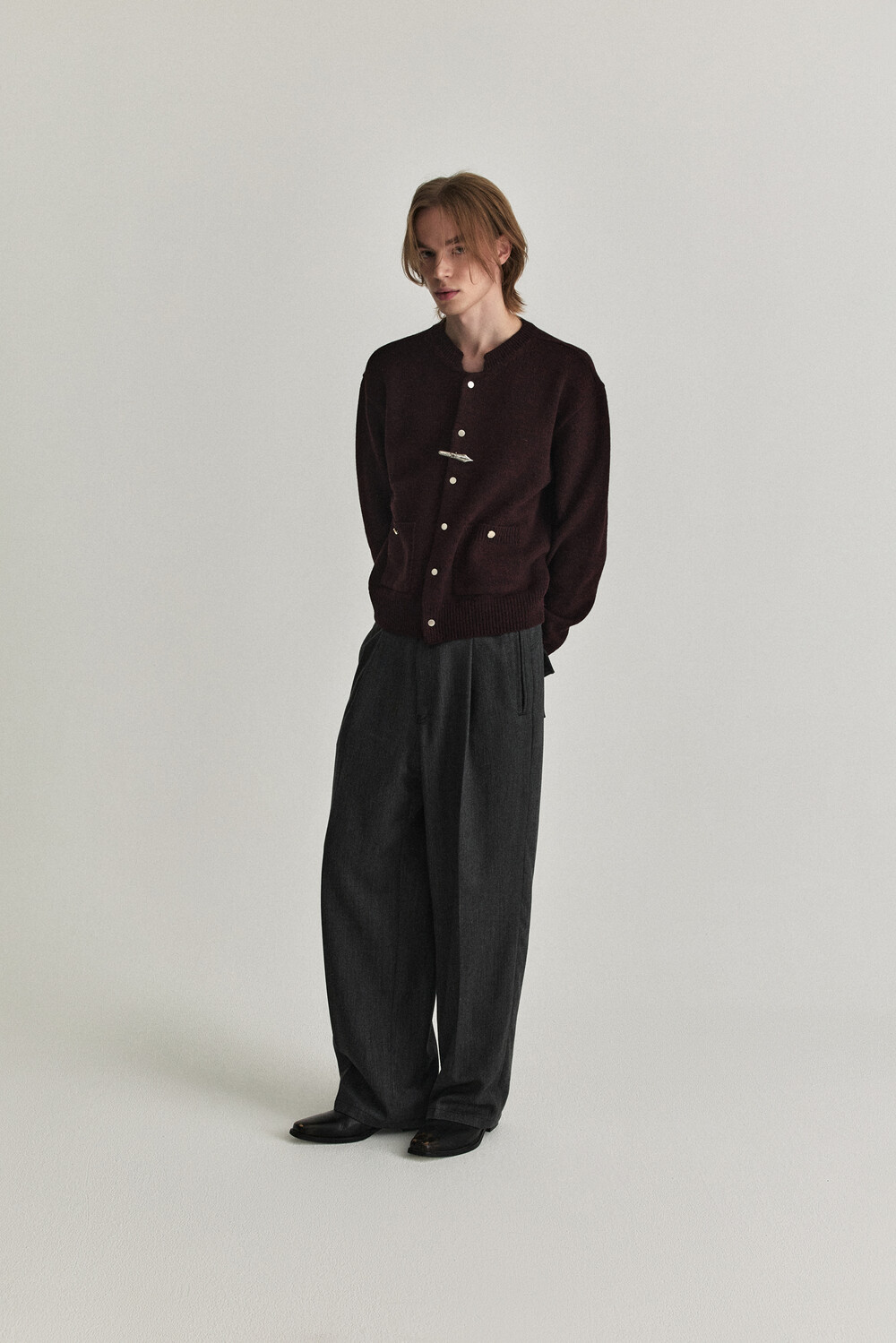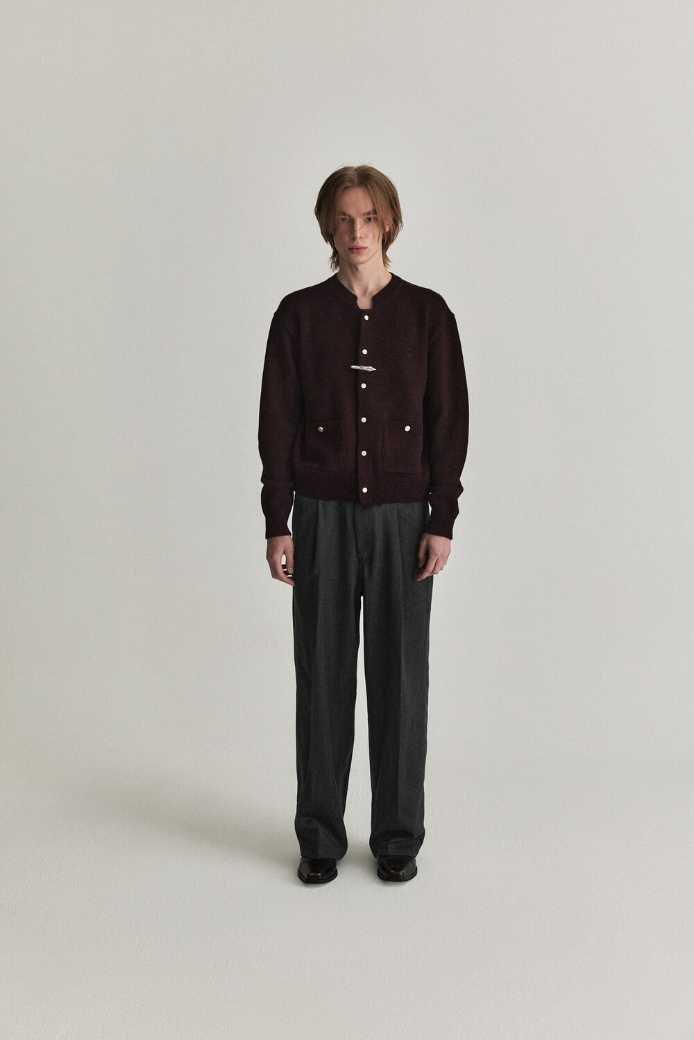 - 울 혼용 니트 패브릭으로 제작된 바시티 형태의 니트 가디건