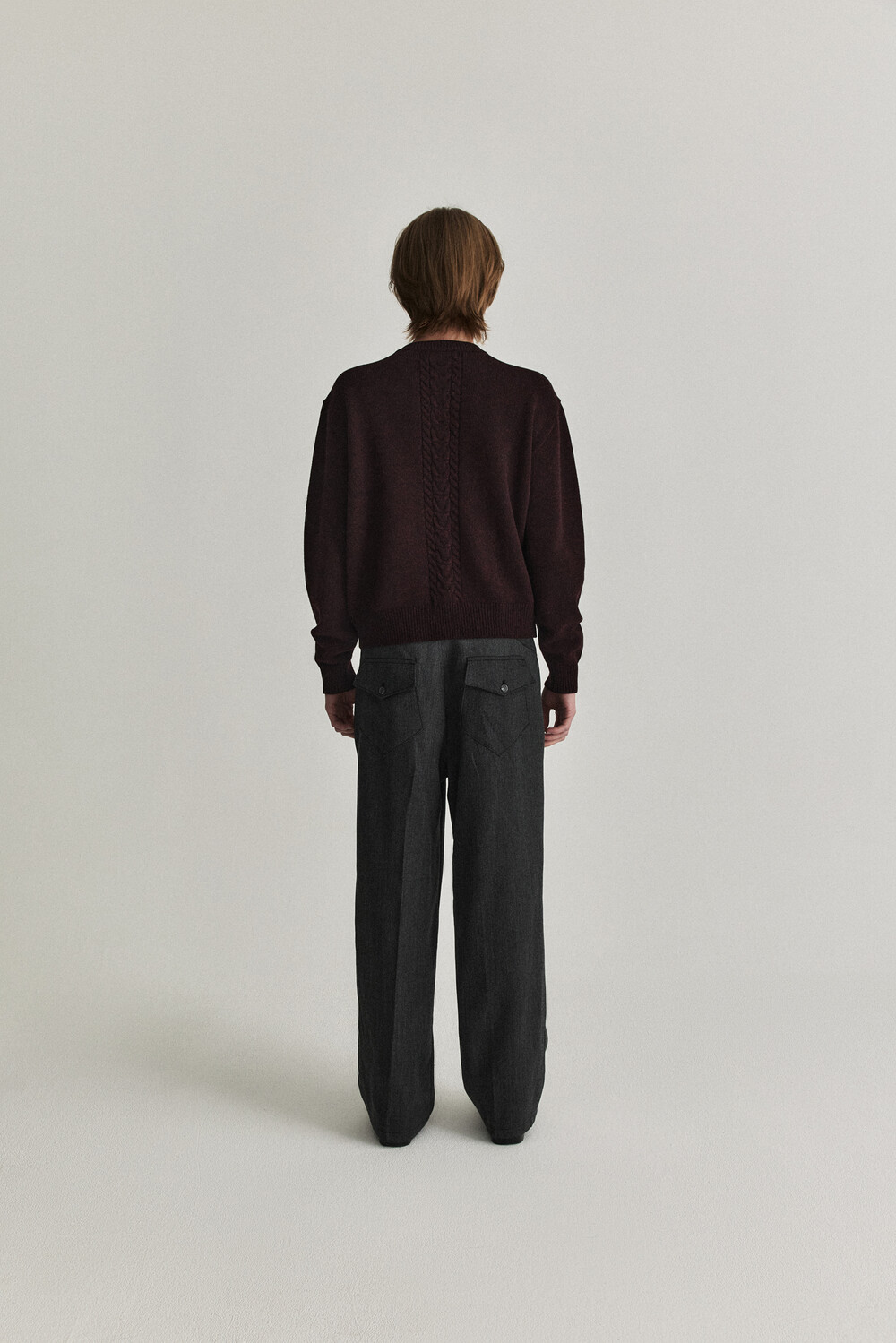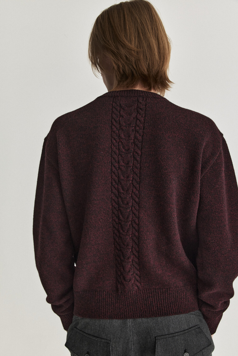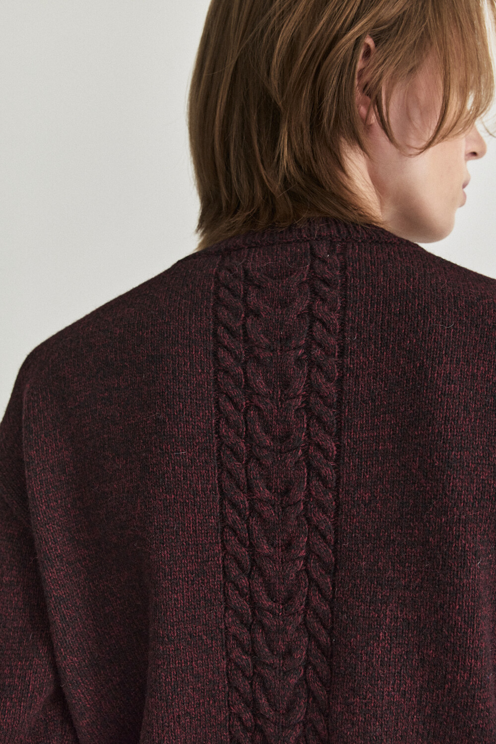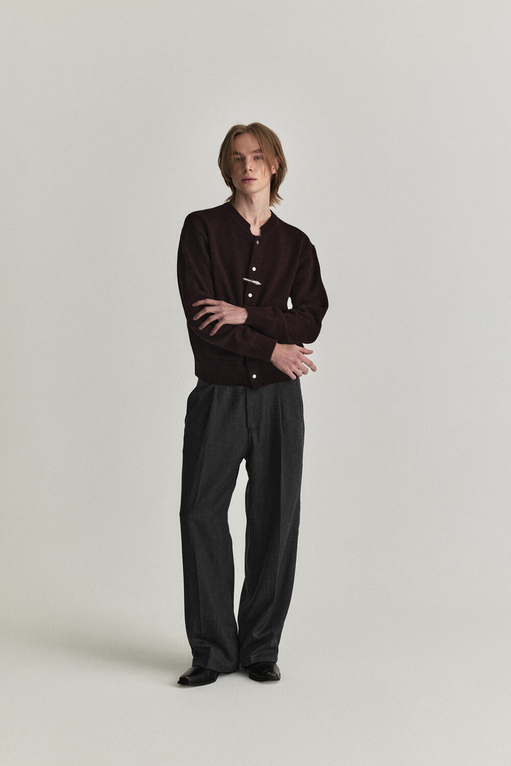 - 울 혼용 니트 패브릭으로 제작된 바시티 형태의 니트 가디건