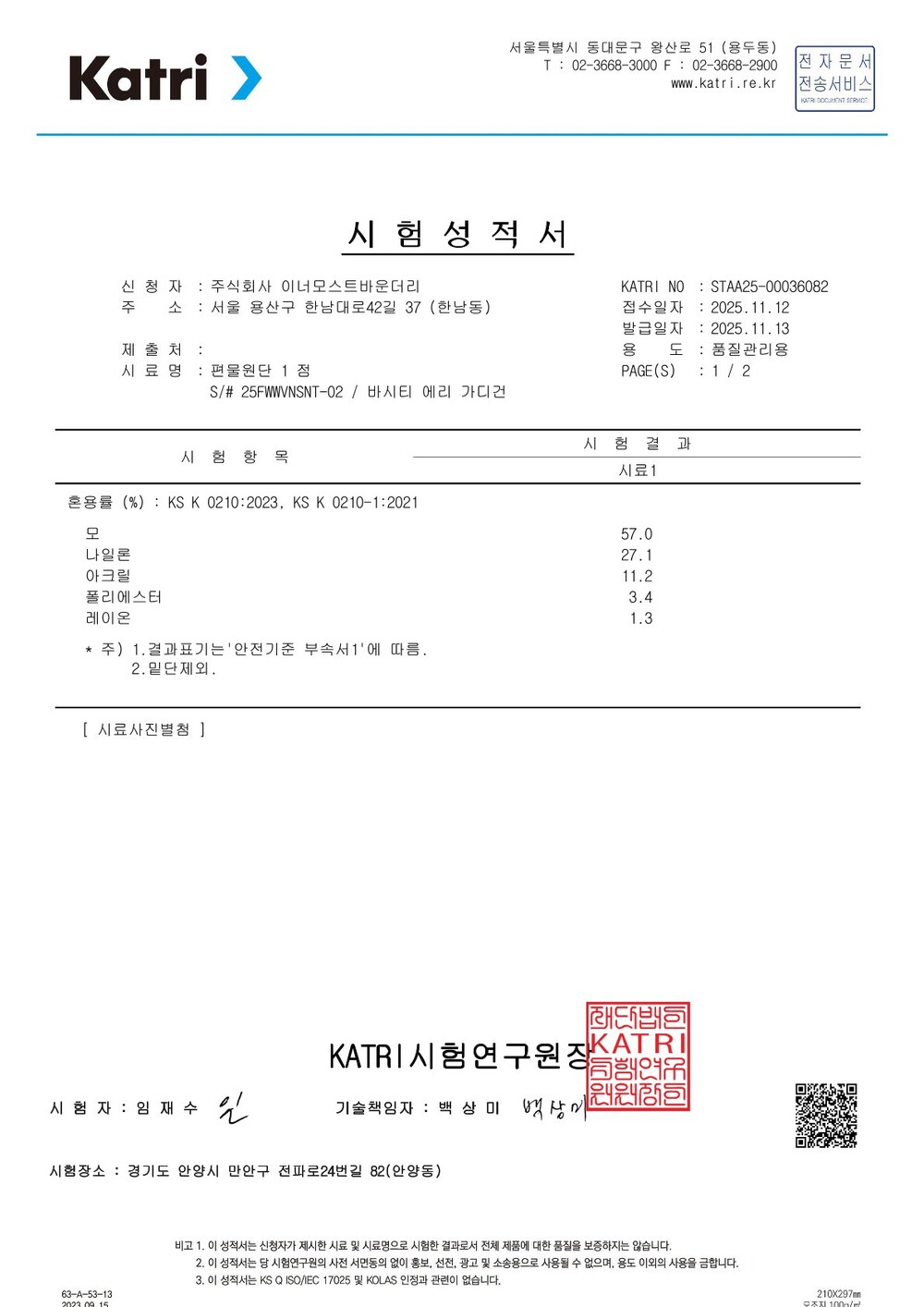 3 : 어깨 52 가슴 60 소매 62 총장 62