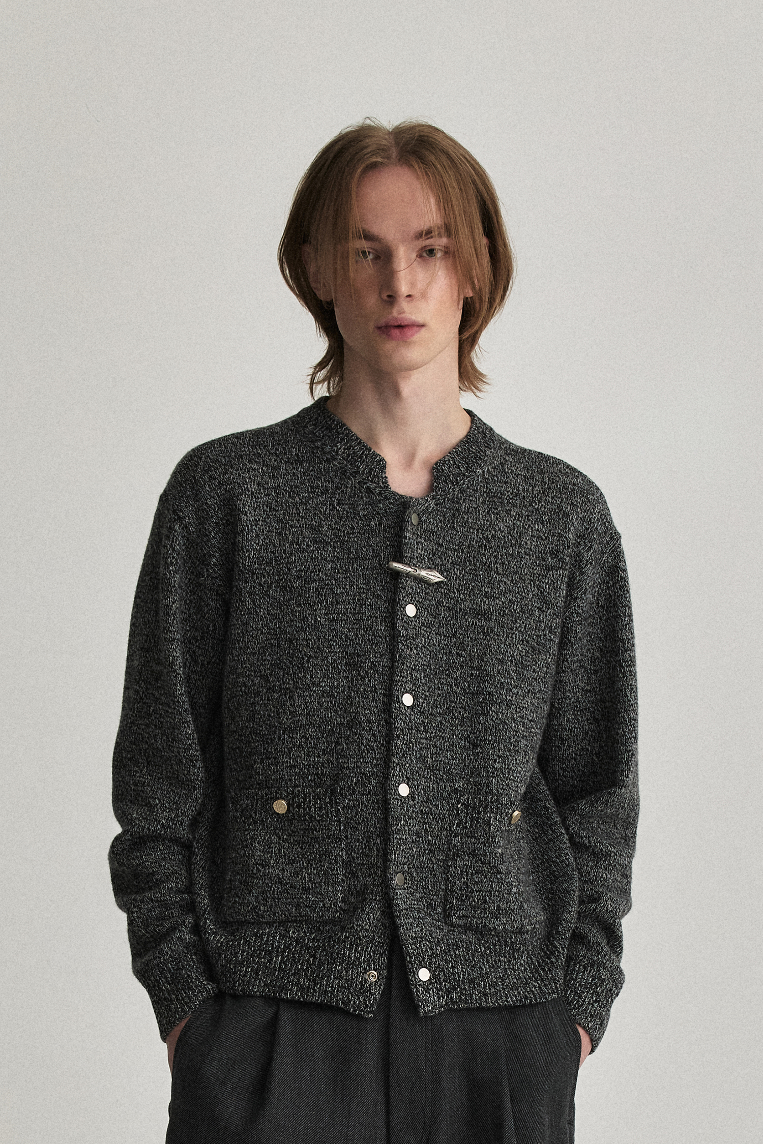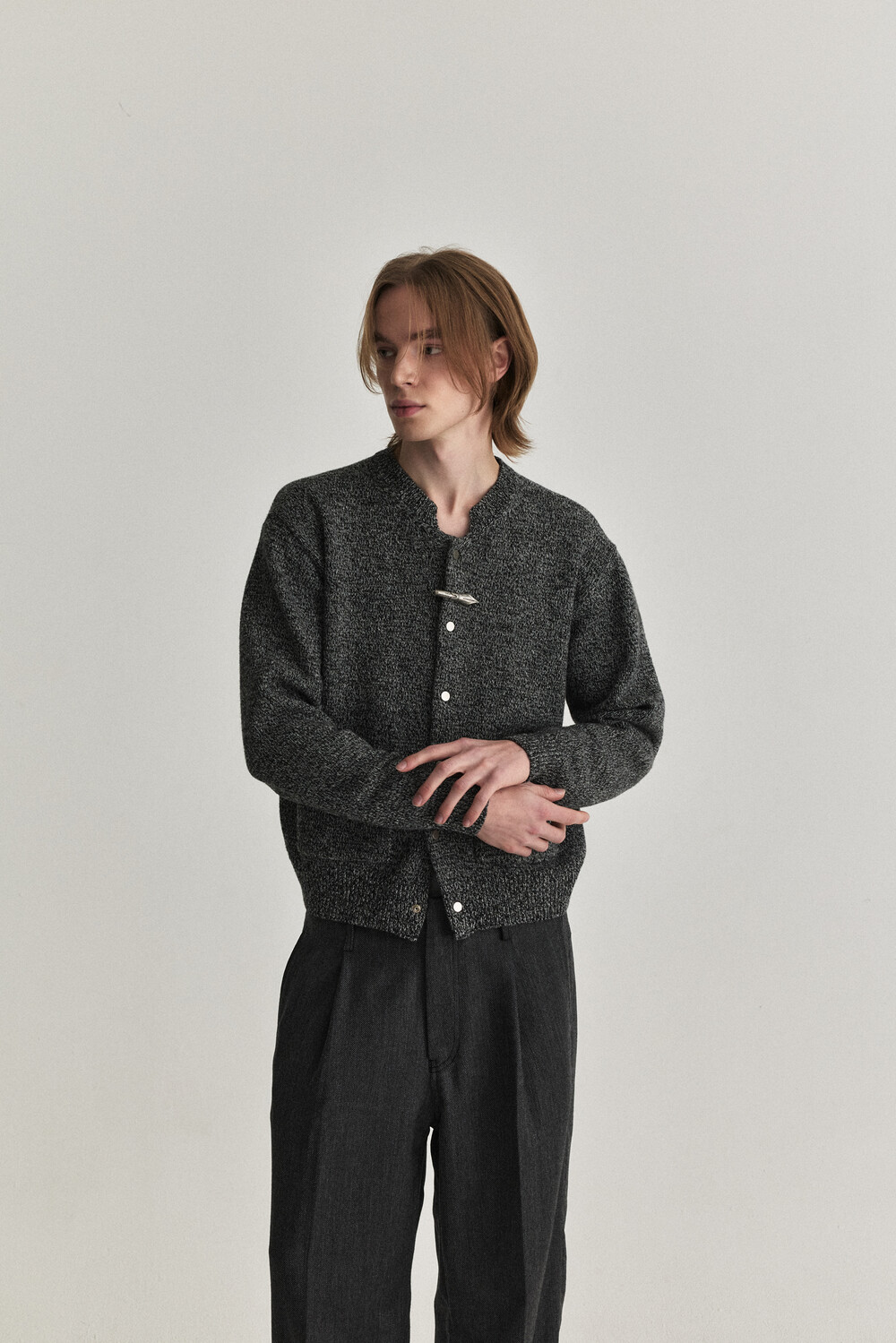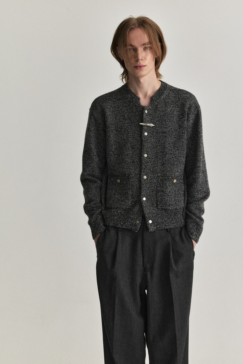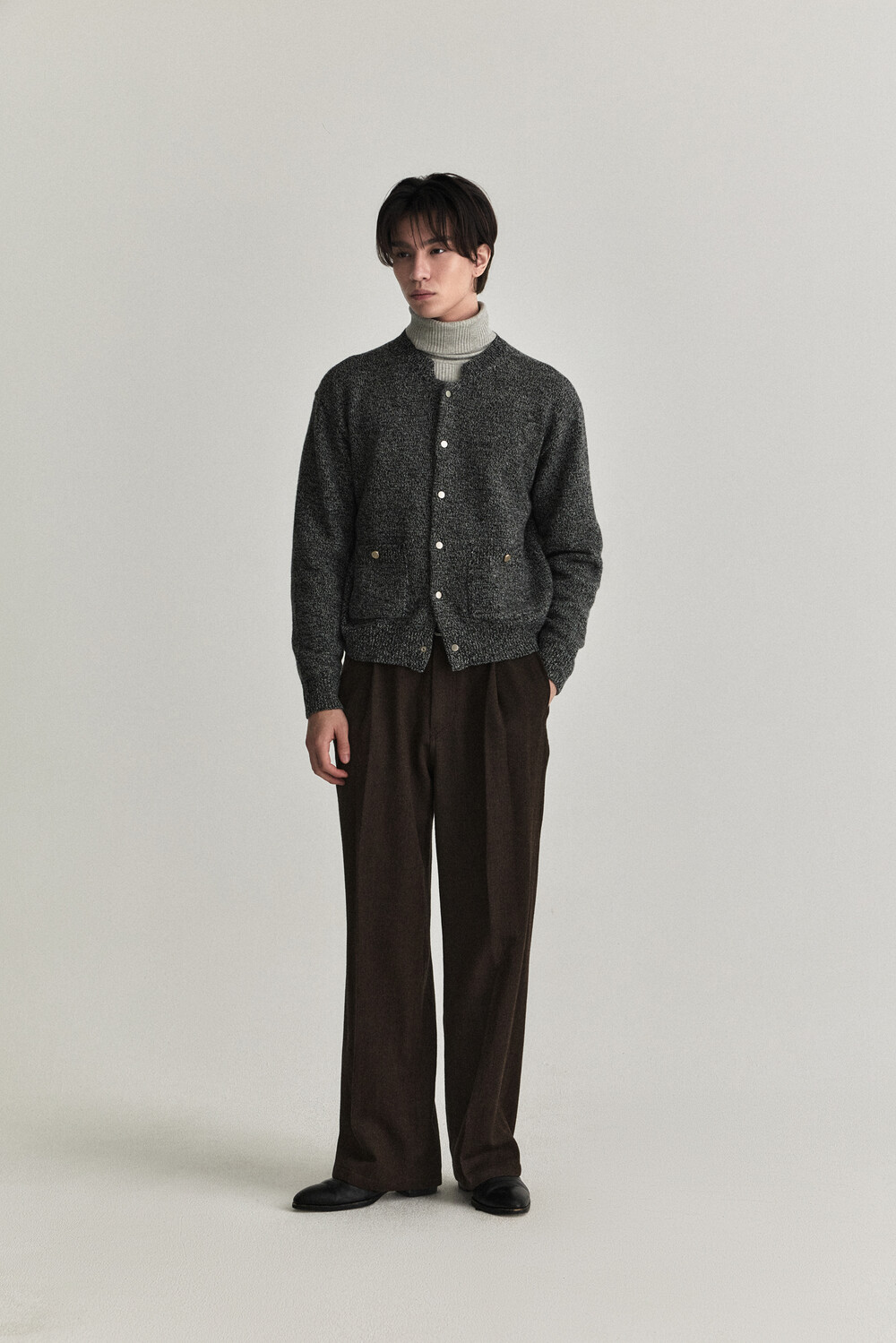 - 울 혼용 니트 패브릭으로 제작된 바시티 형태의 니트 가디건