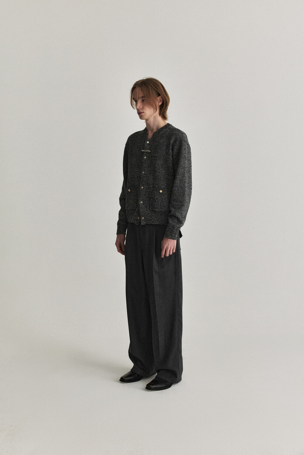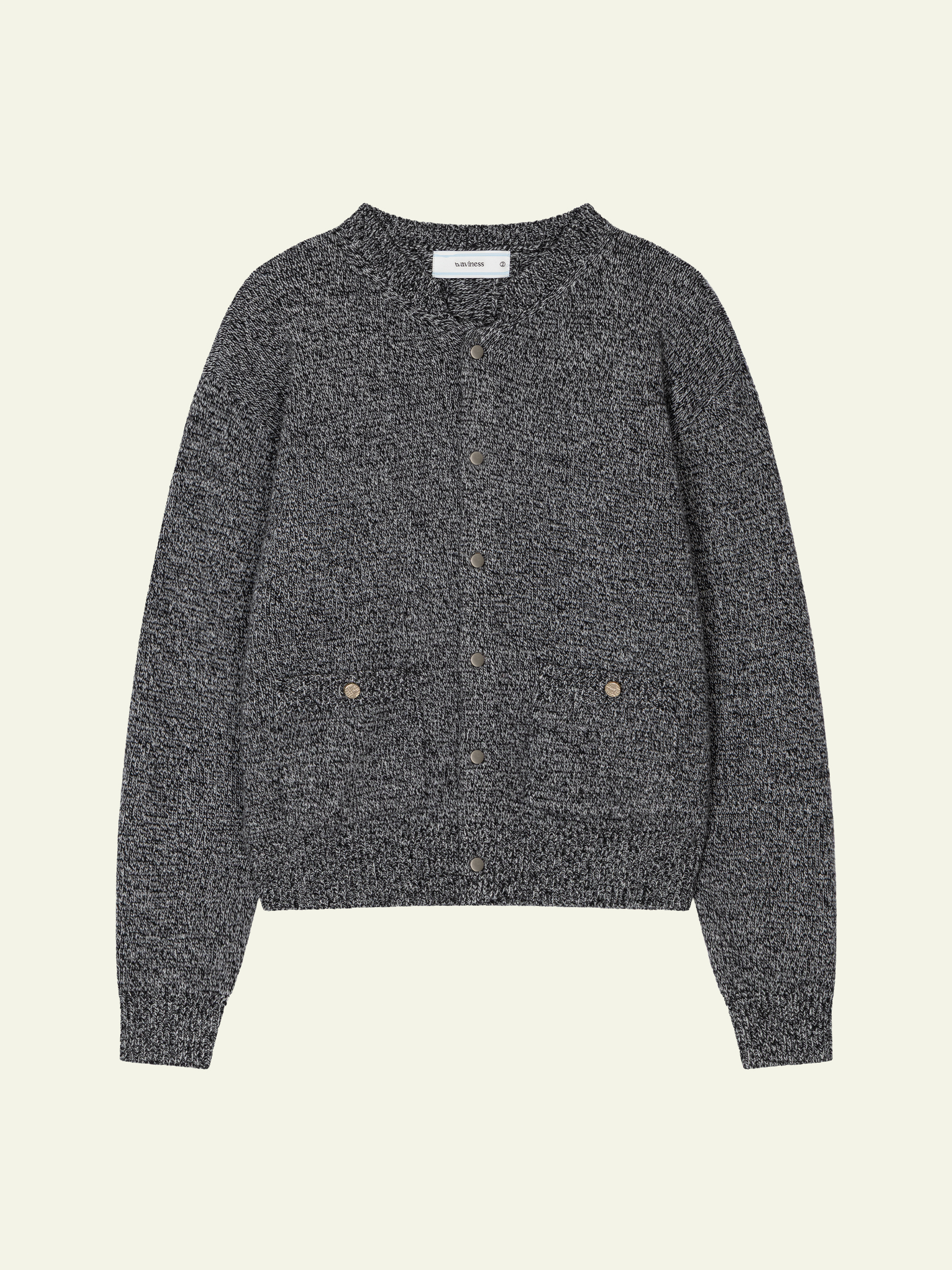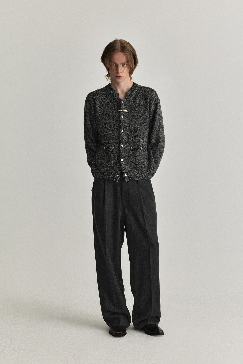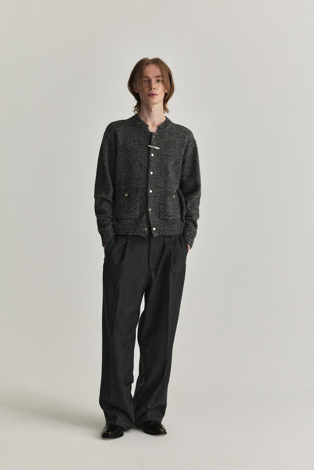 - 울 혼용 니트 패브릭으로 제작된 바시티 형태의 니트 가디건