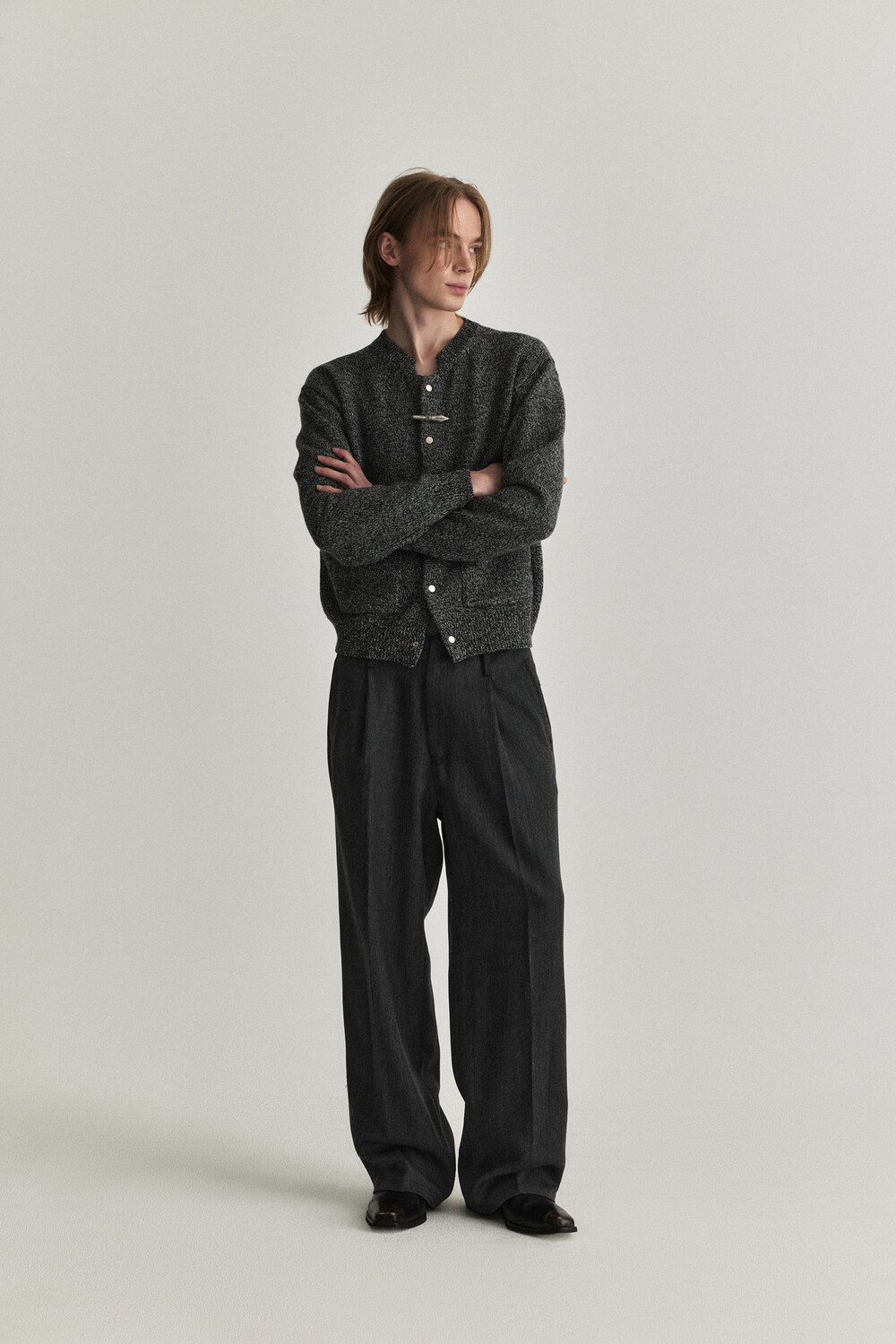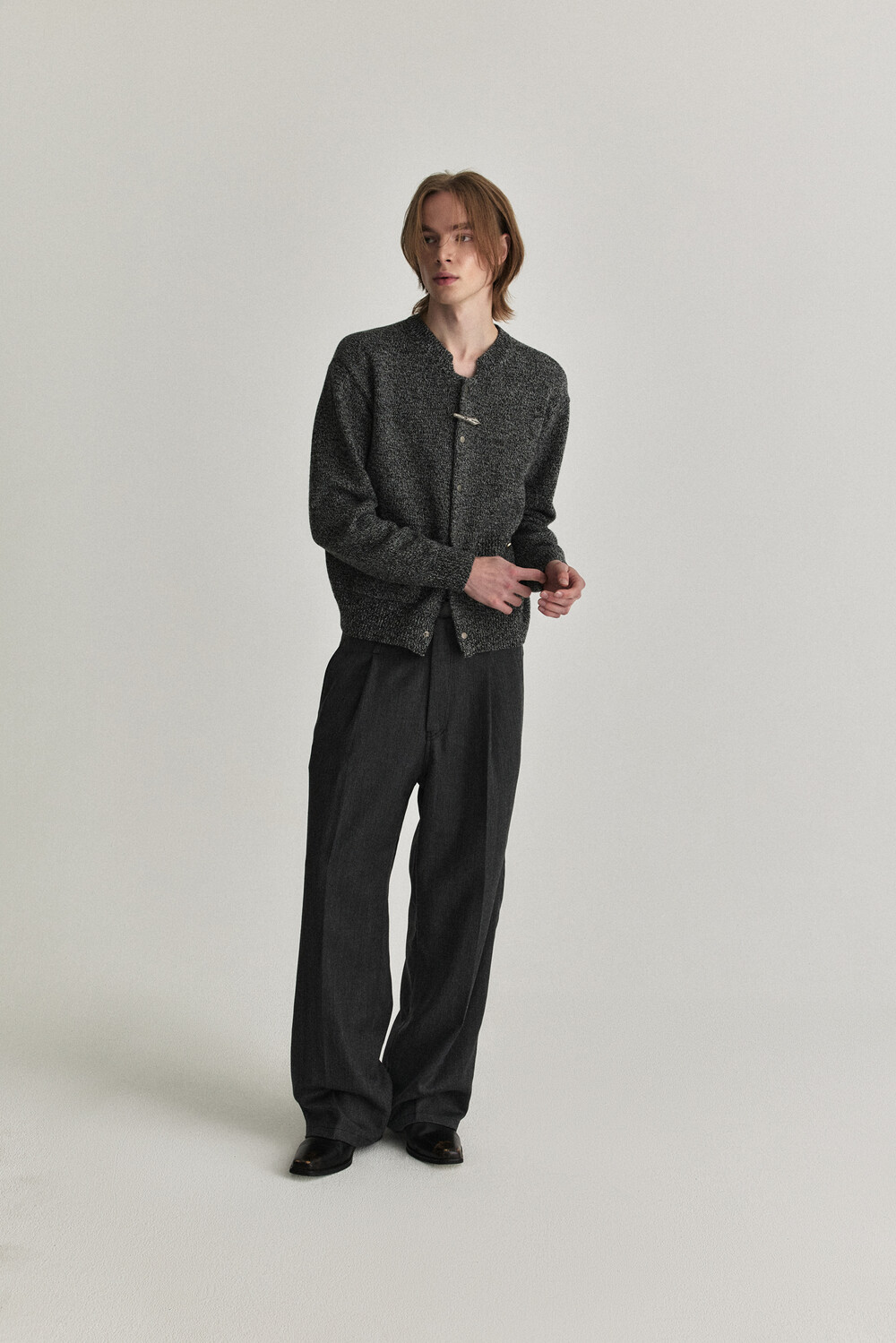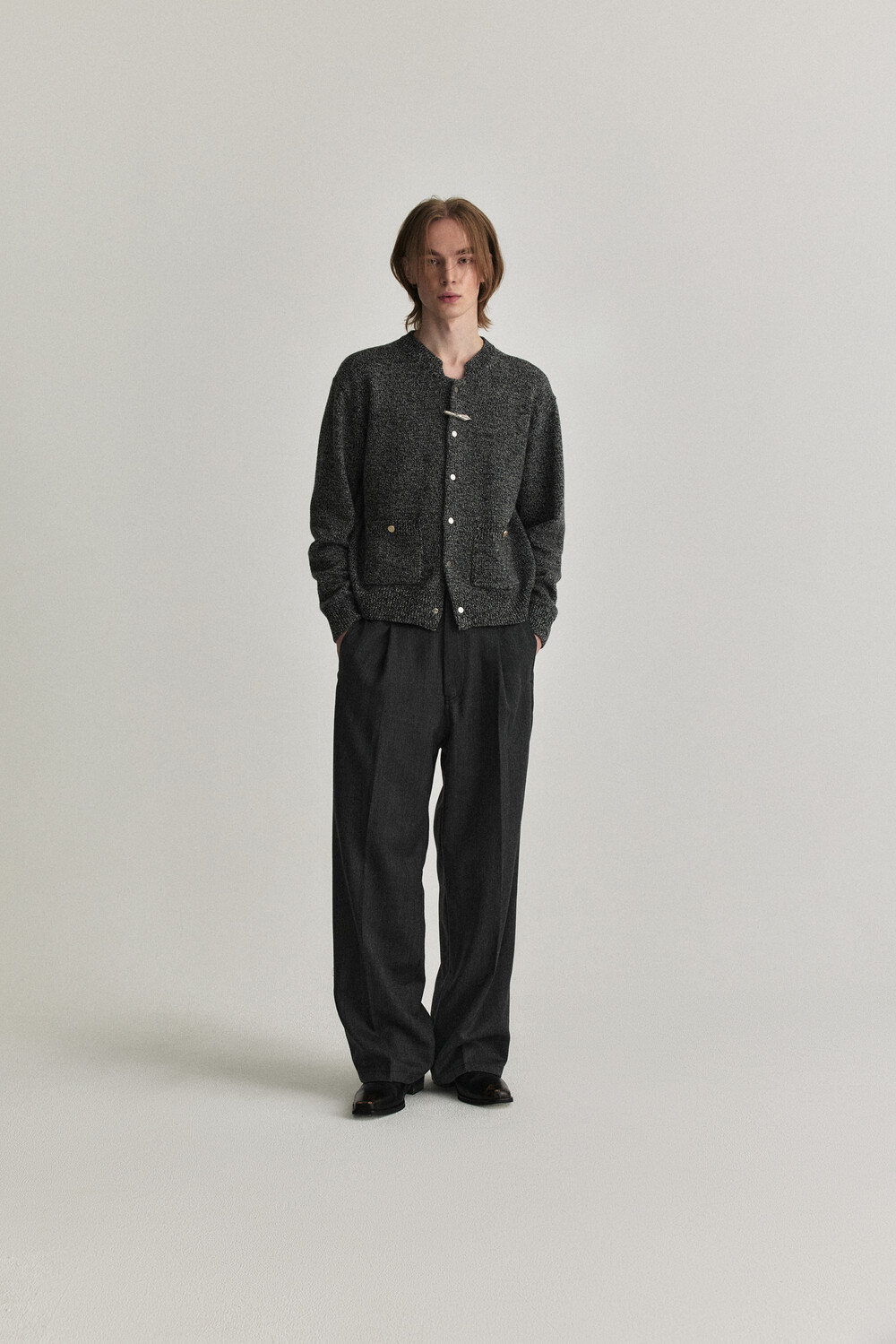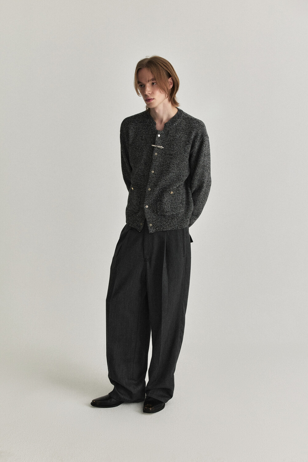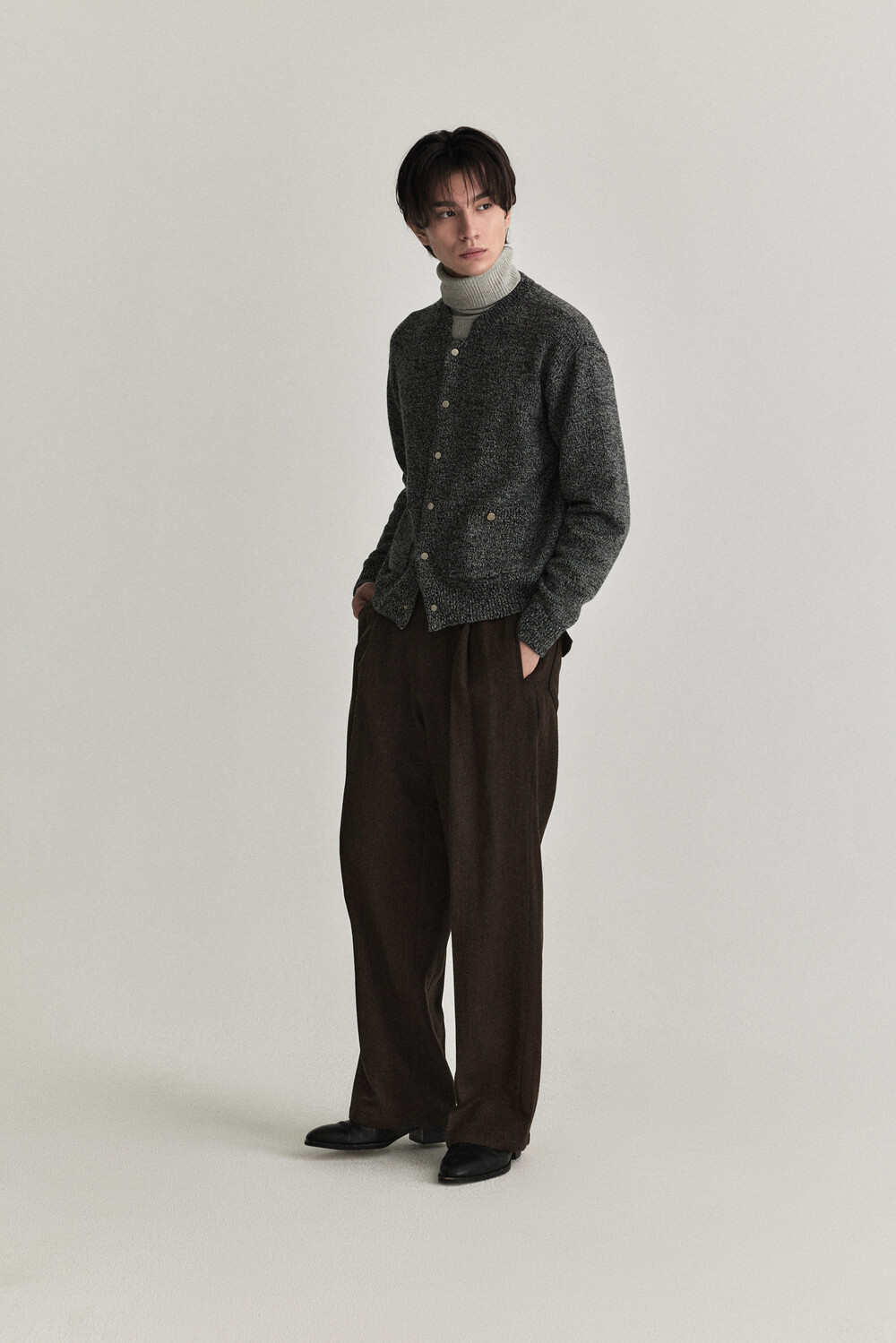 - 울 혼용 니트 패브릭으로 제작된 바시티 형태의 니트 가디건