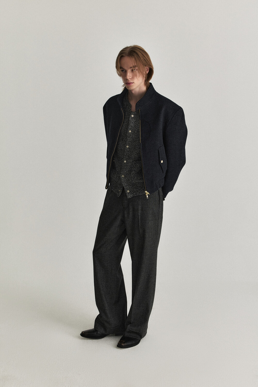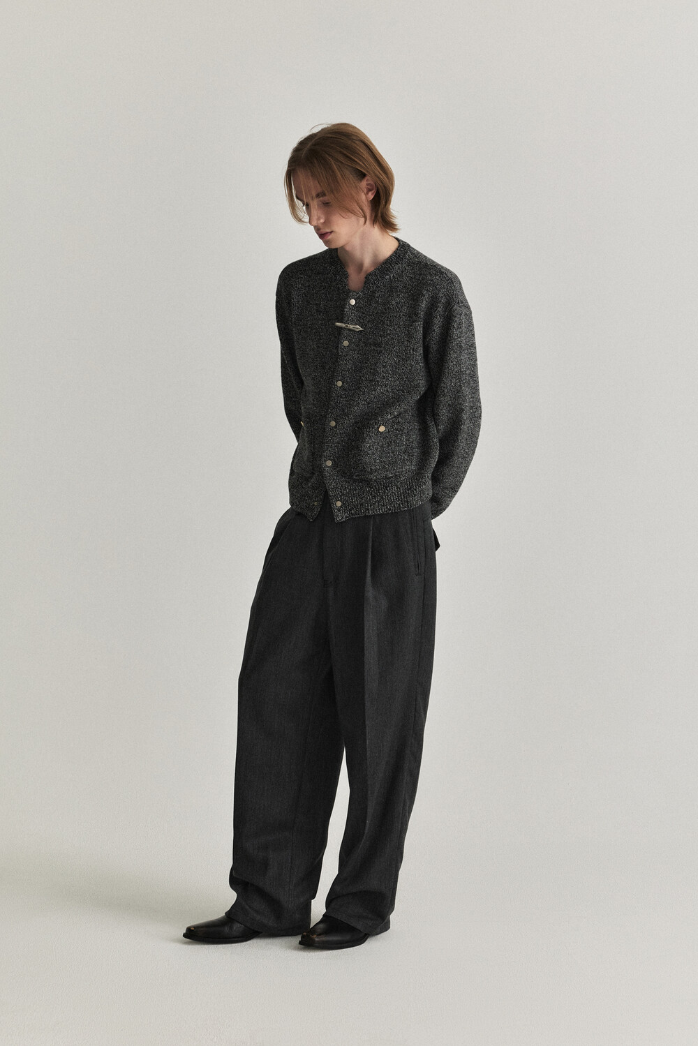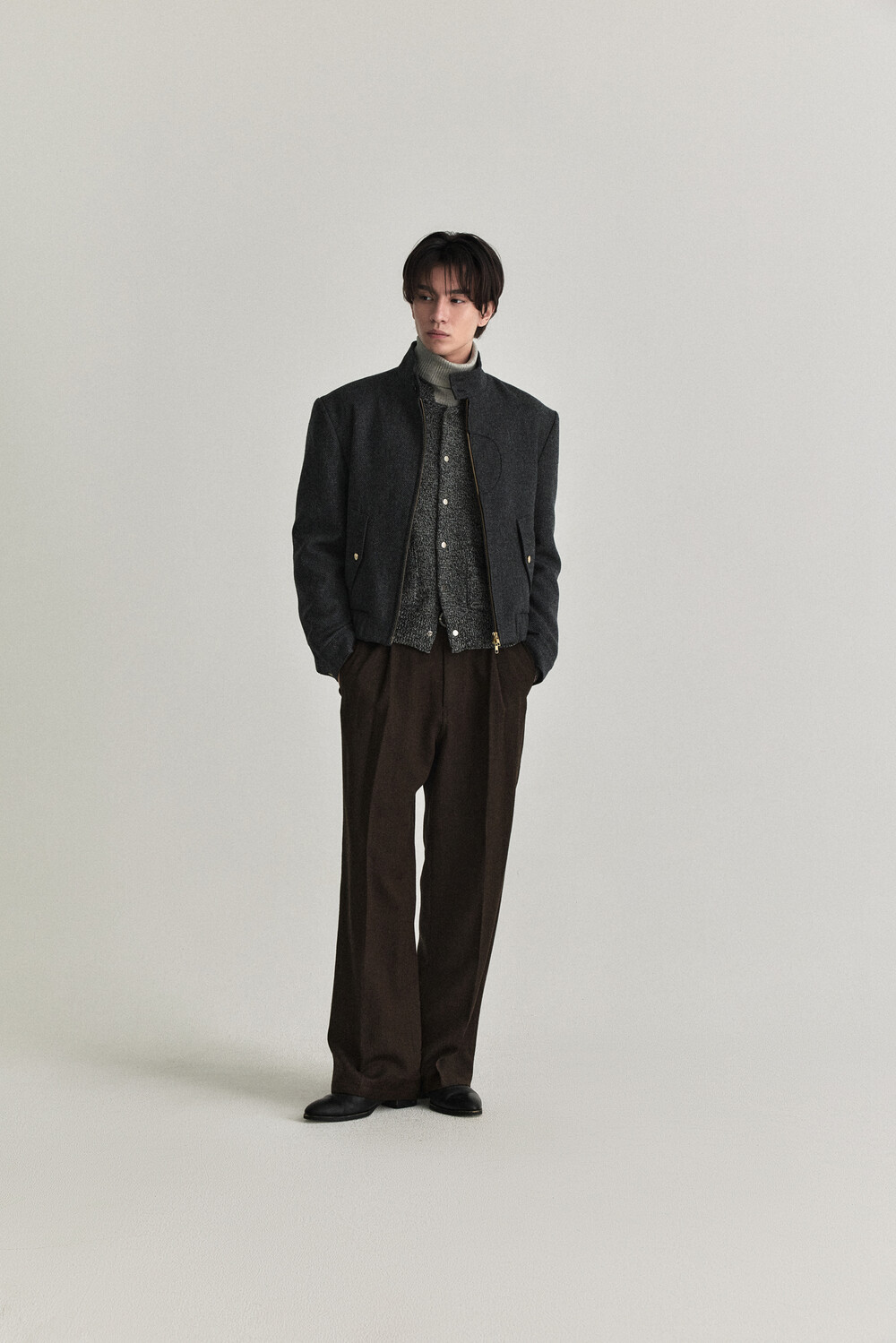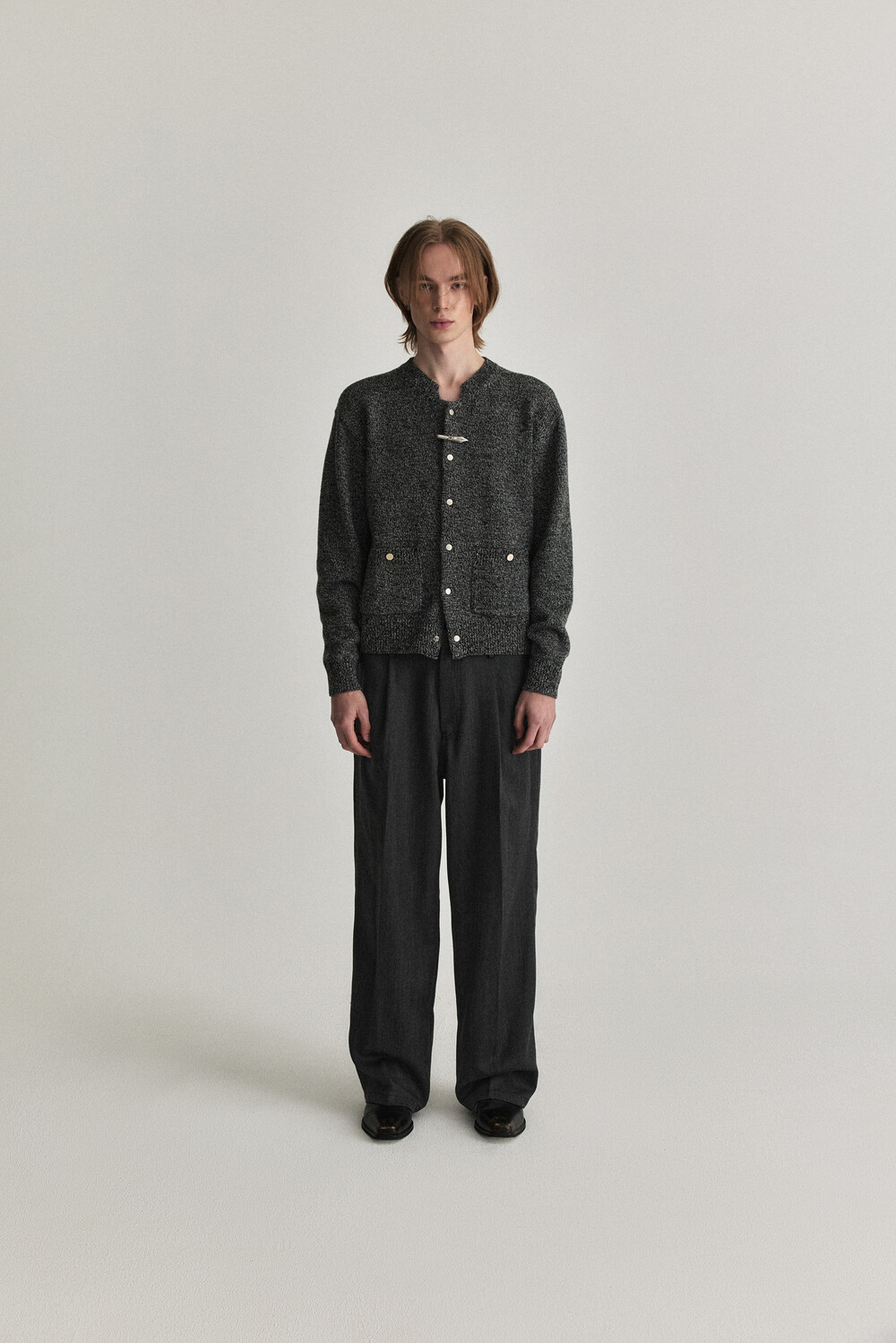 - 울 혼용 니트 패브릭으로 제작된 바시티 형태의 니트 가디건