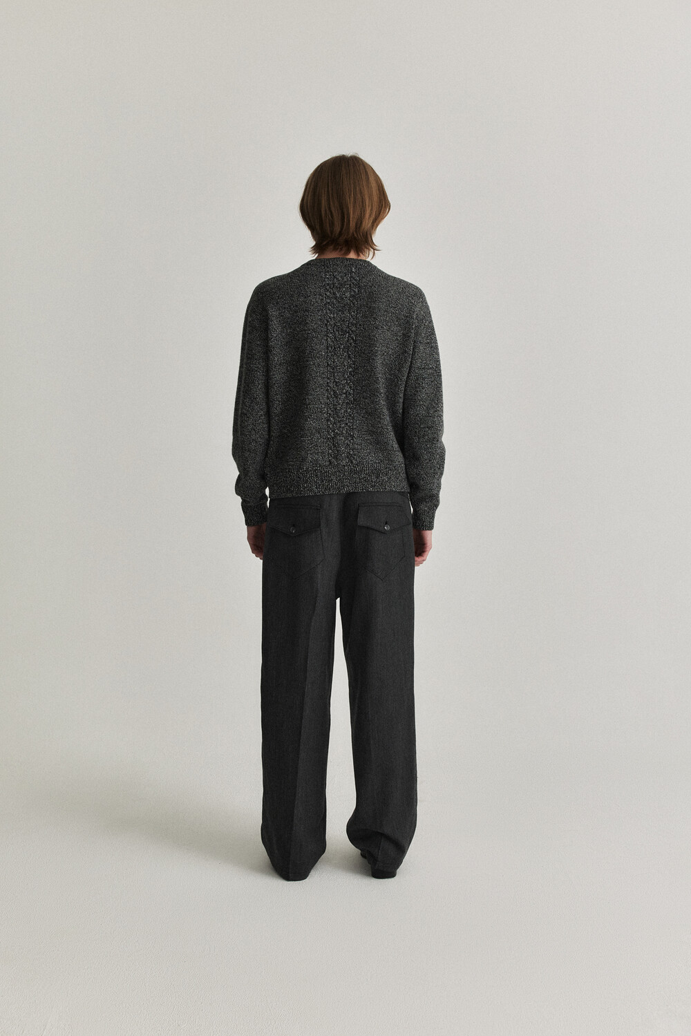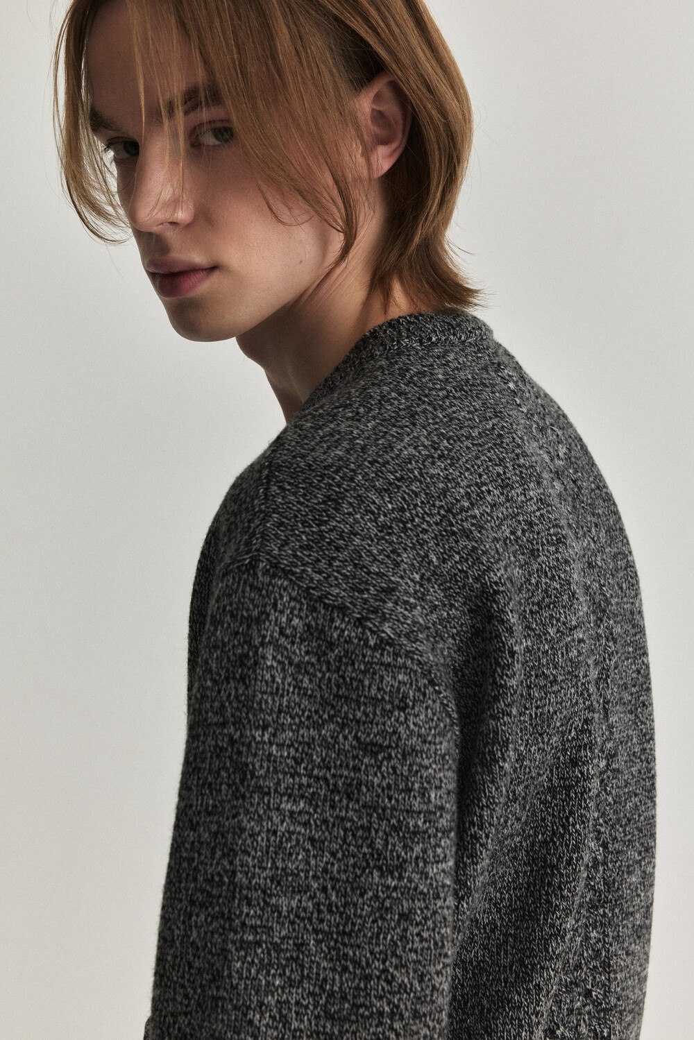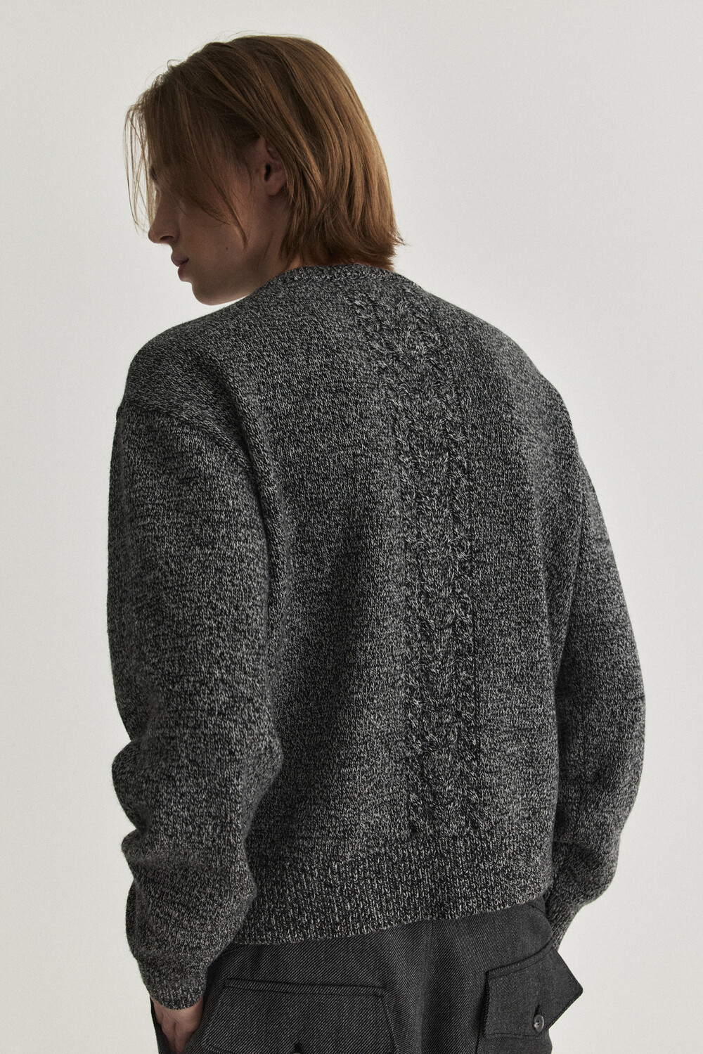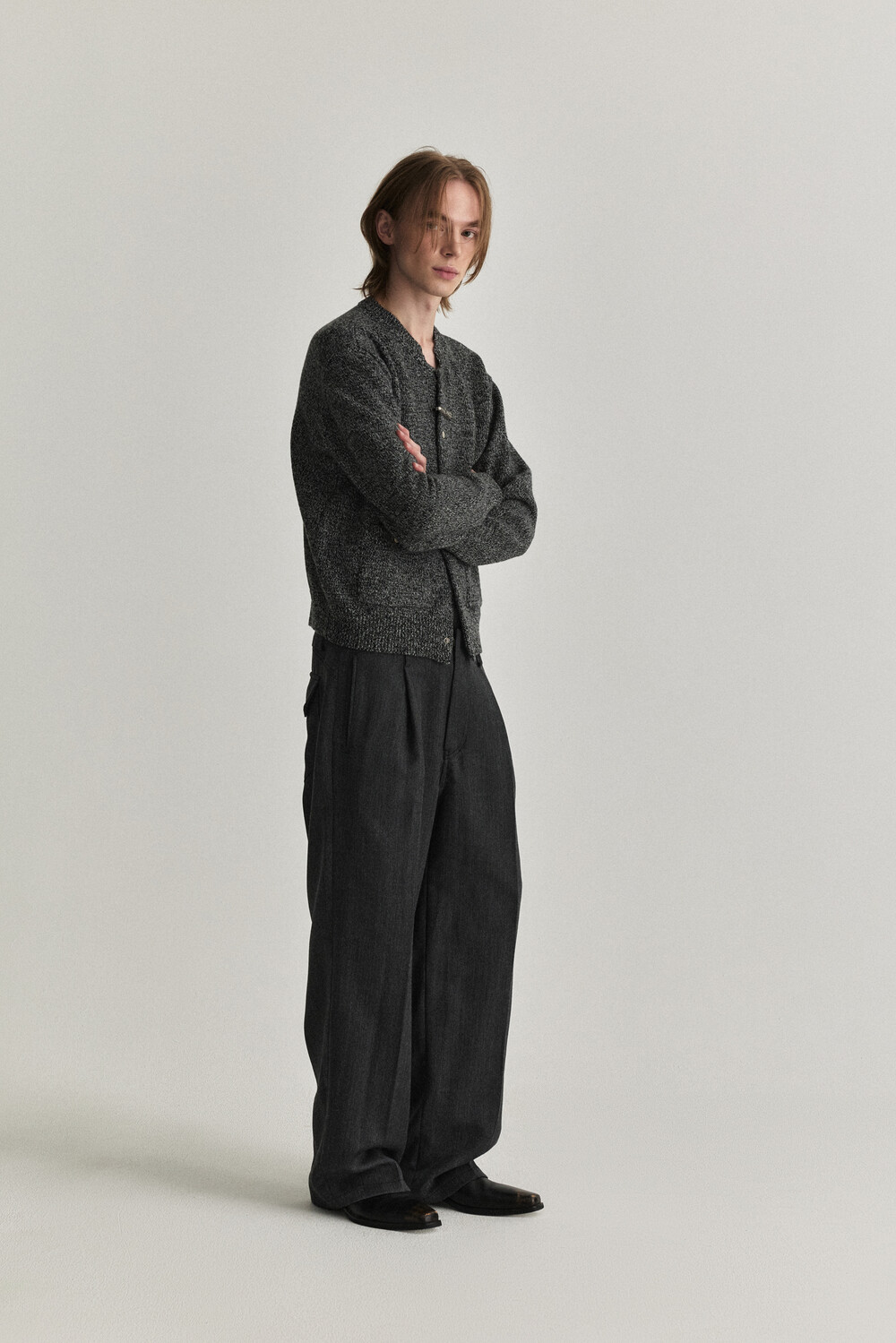 - 울 혼용 니트 패브릭으로 제작된 바시티 형태의 니트 가디건