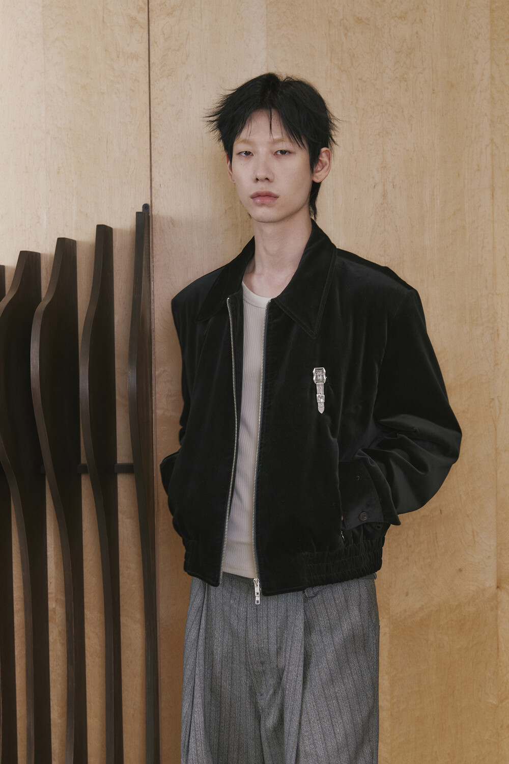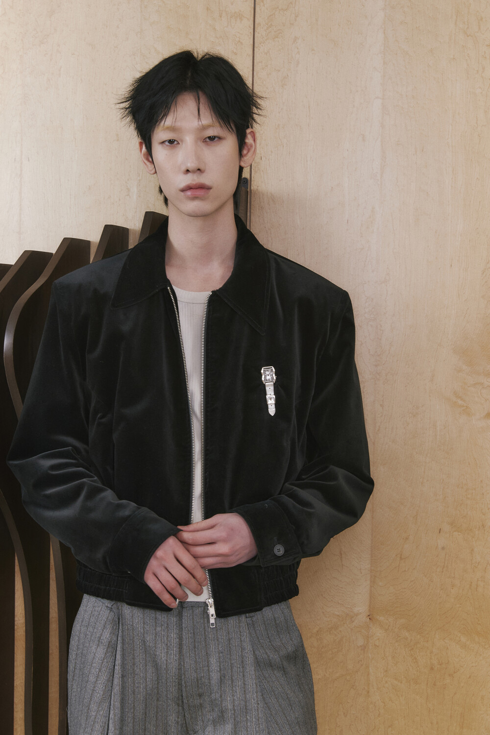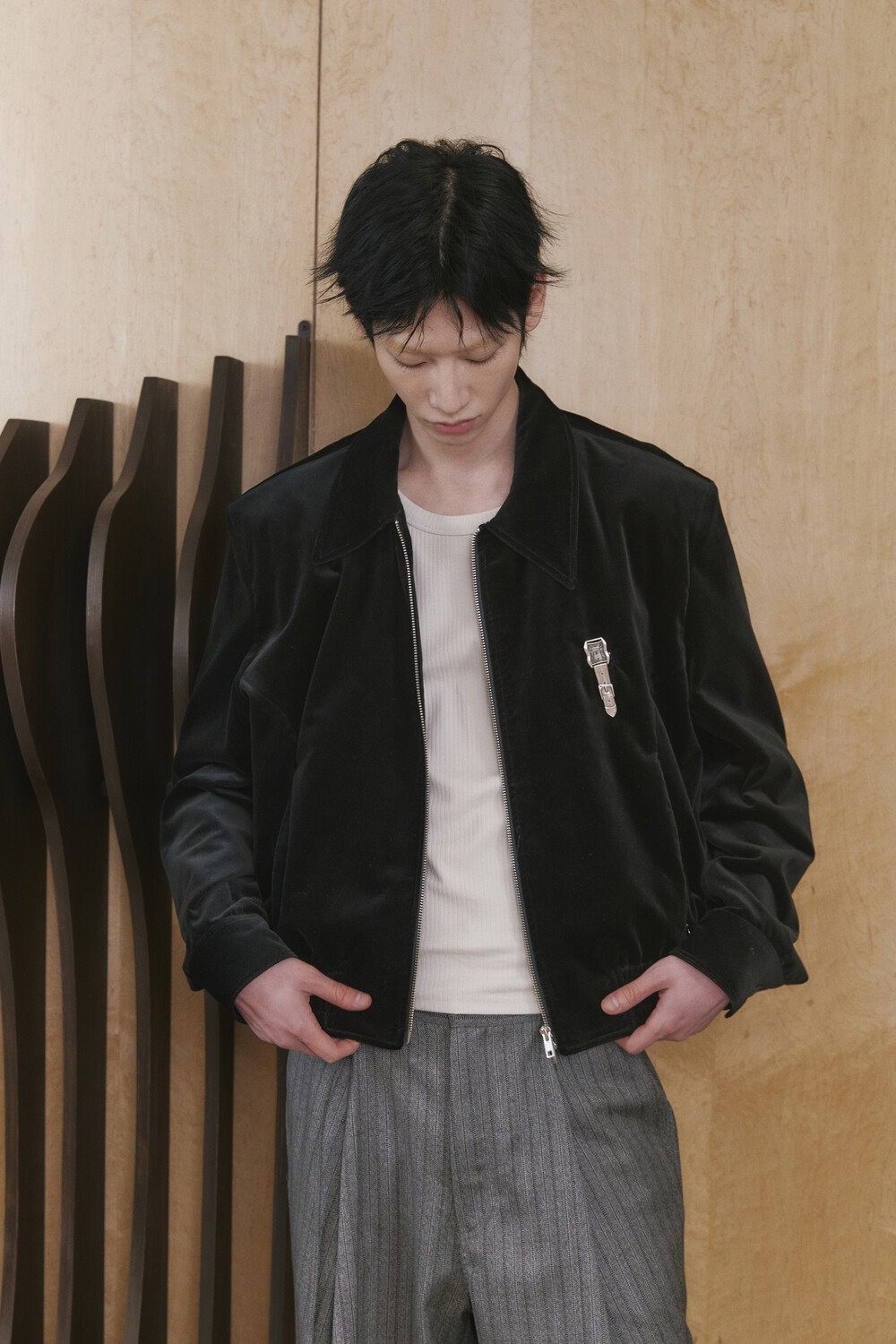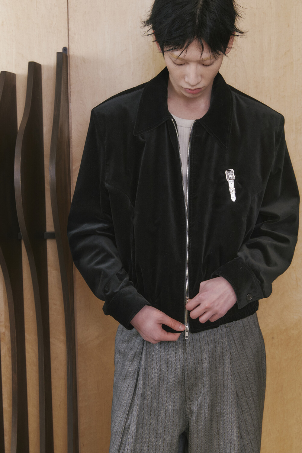 Velvet Oxford Blouson - Black