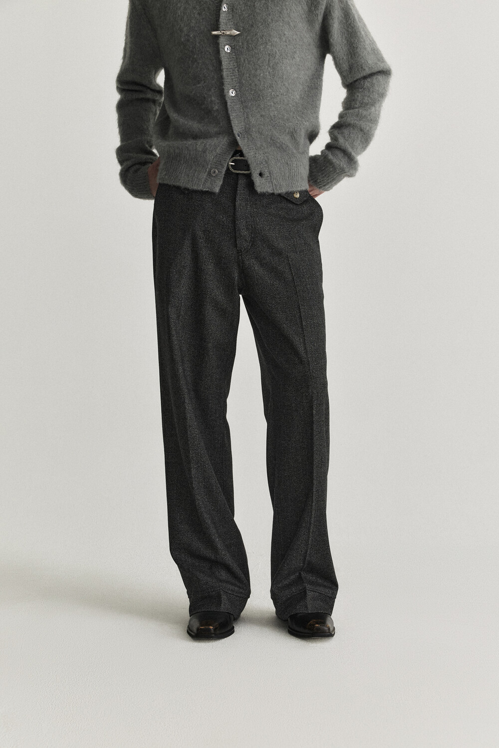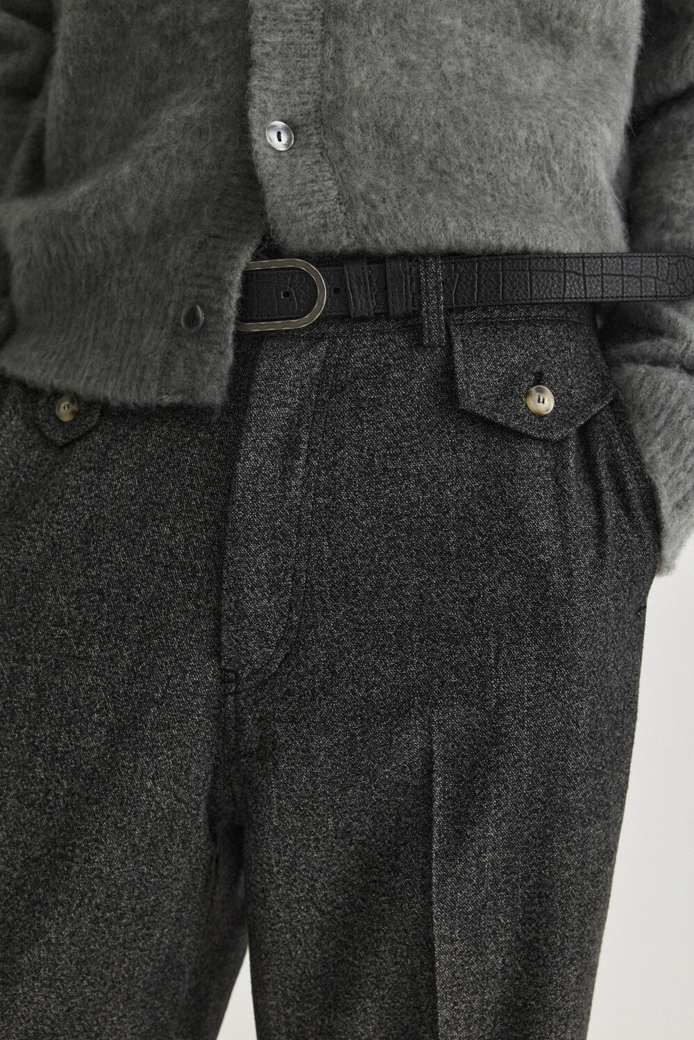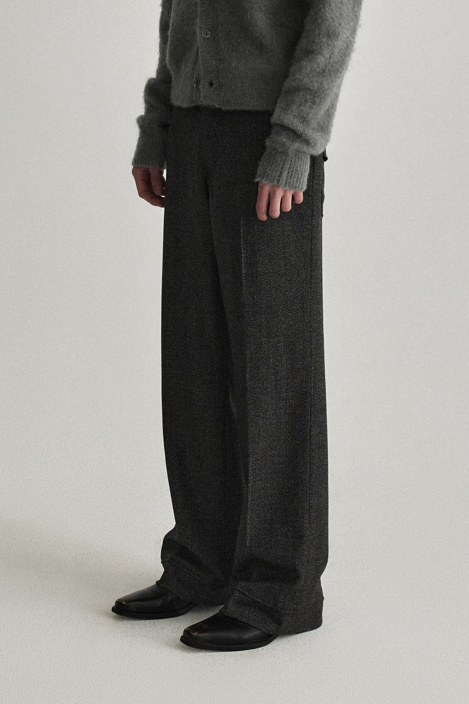 Waist Flap Layered Slacks - Charcoal