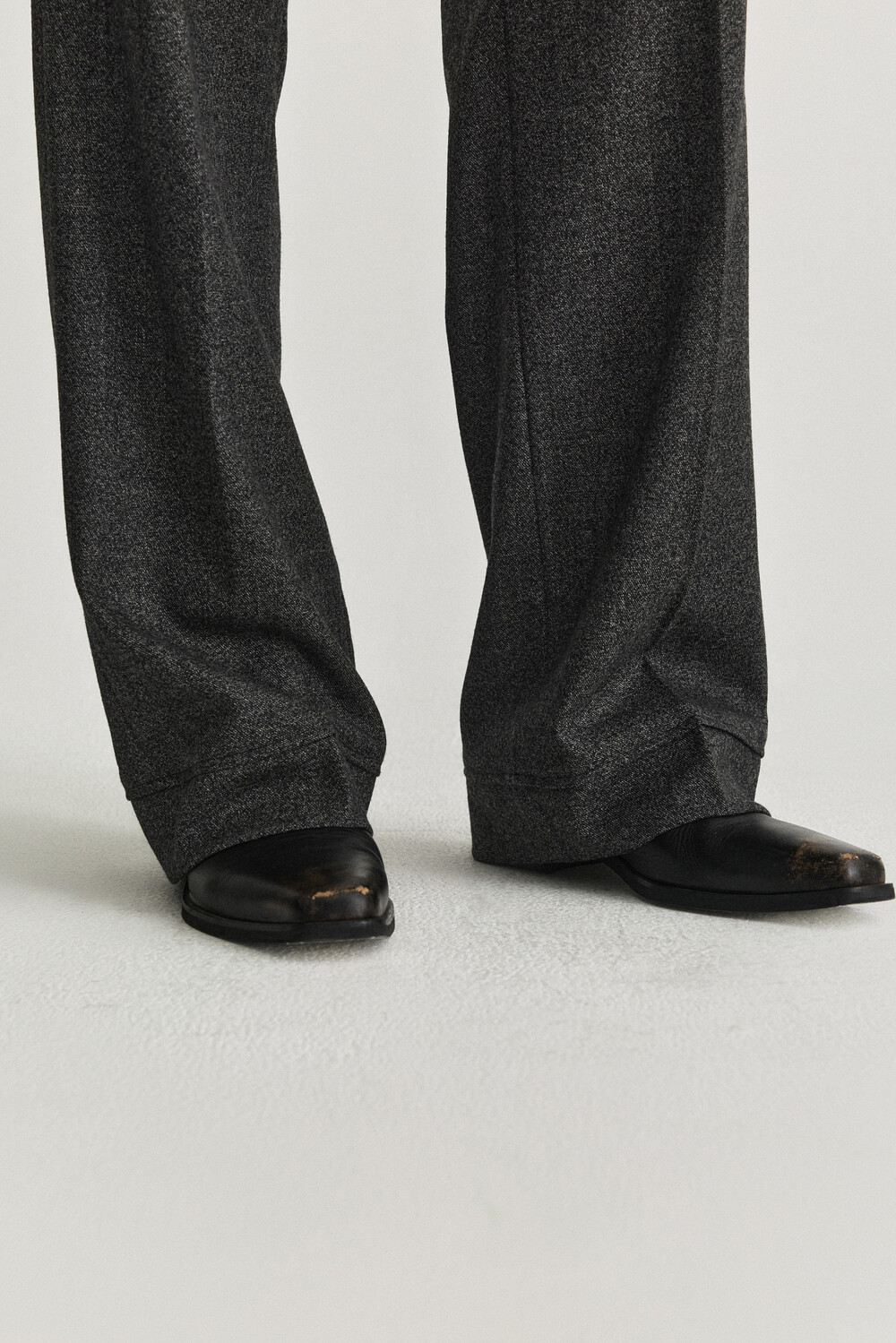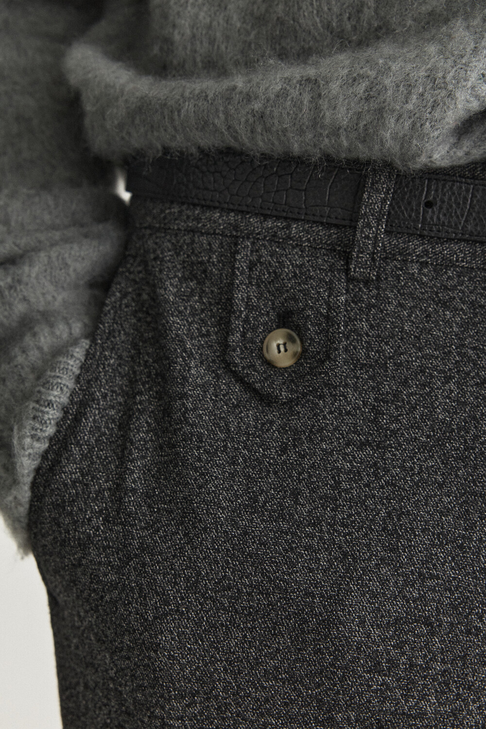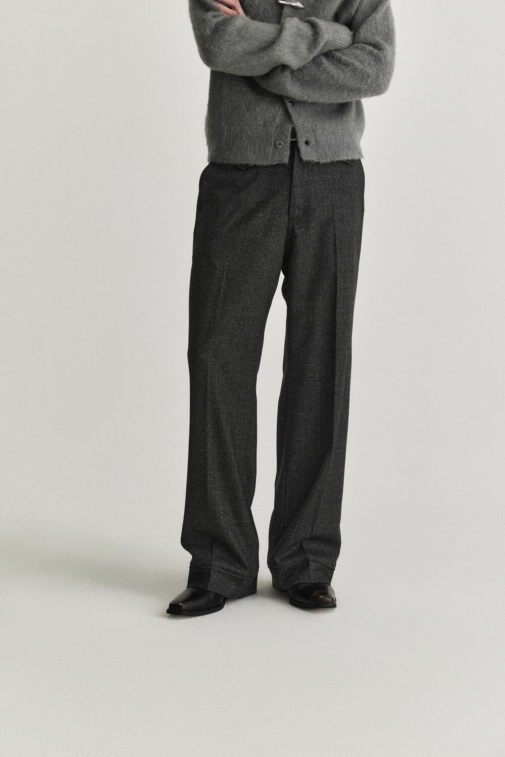 Waist Flap Layered Slacks - Charcoal