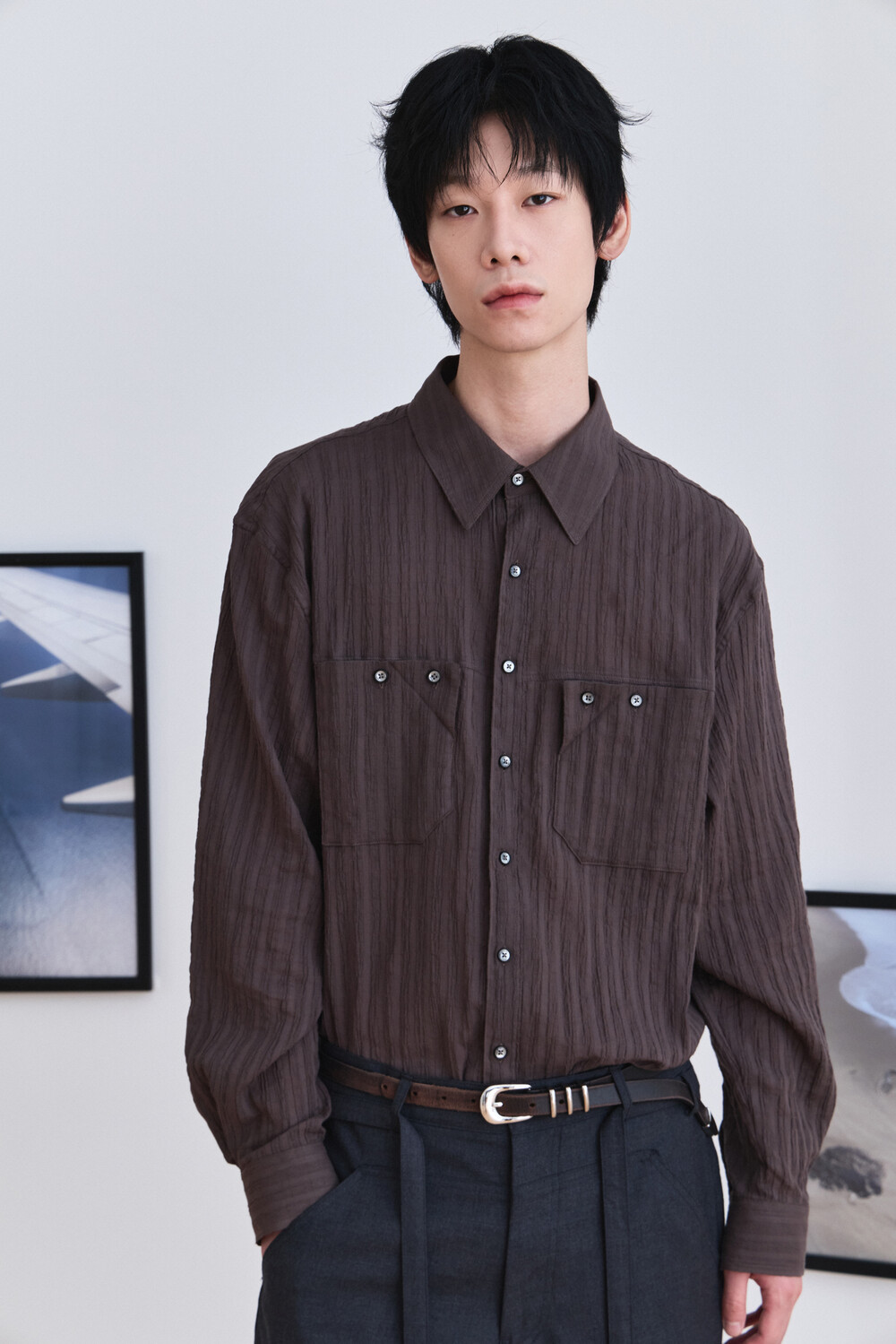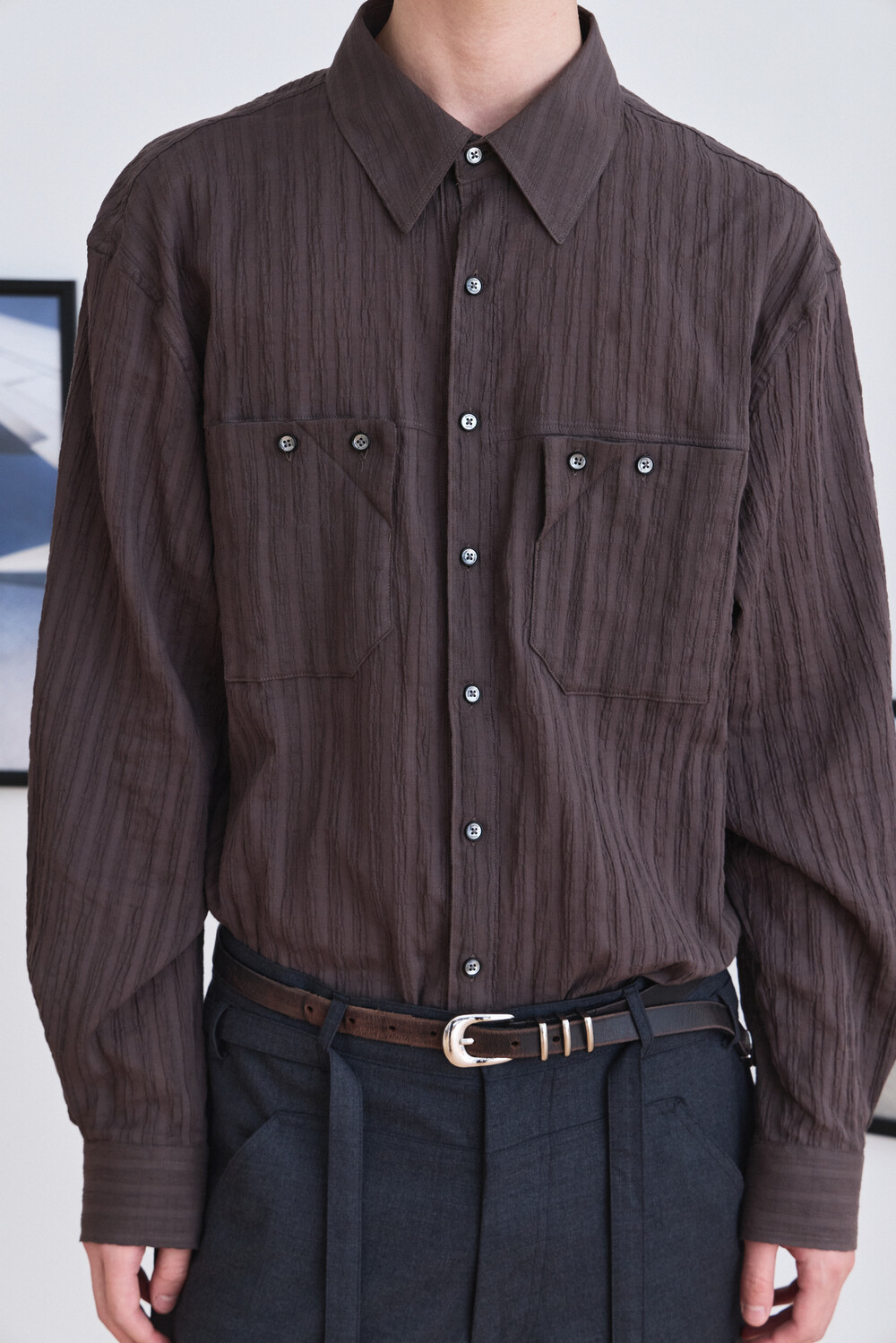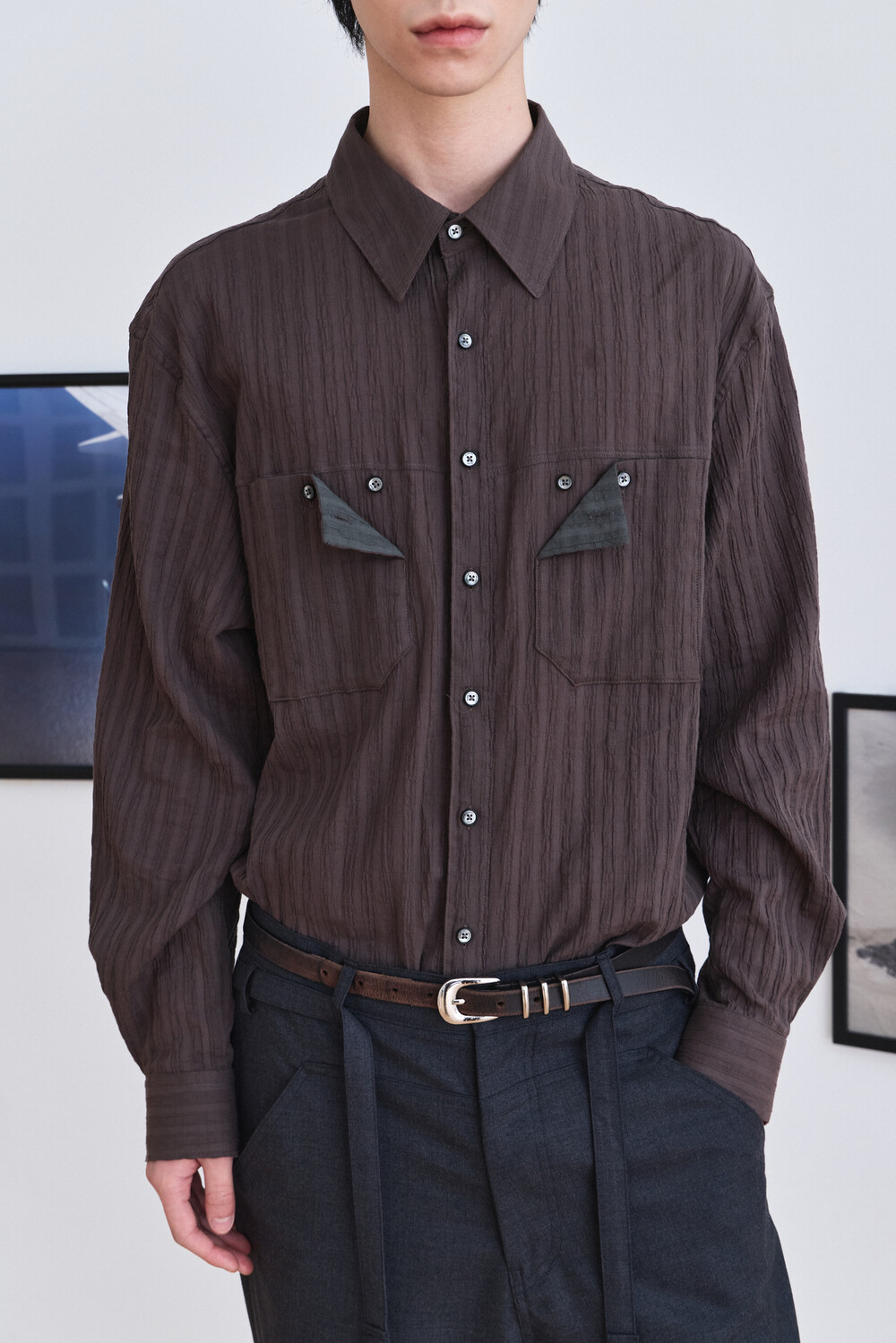 Wrinkle Folded Pocket Shirts - Brown