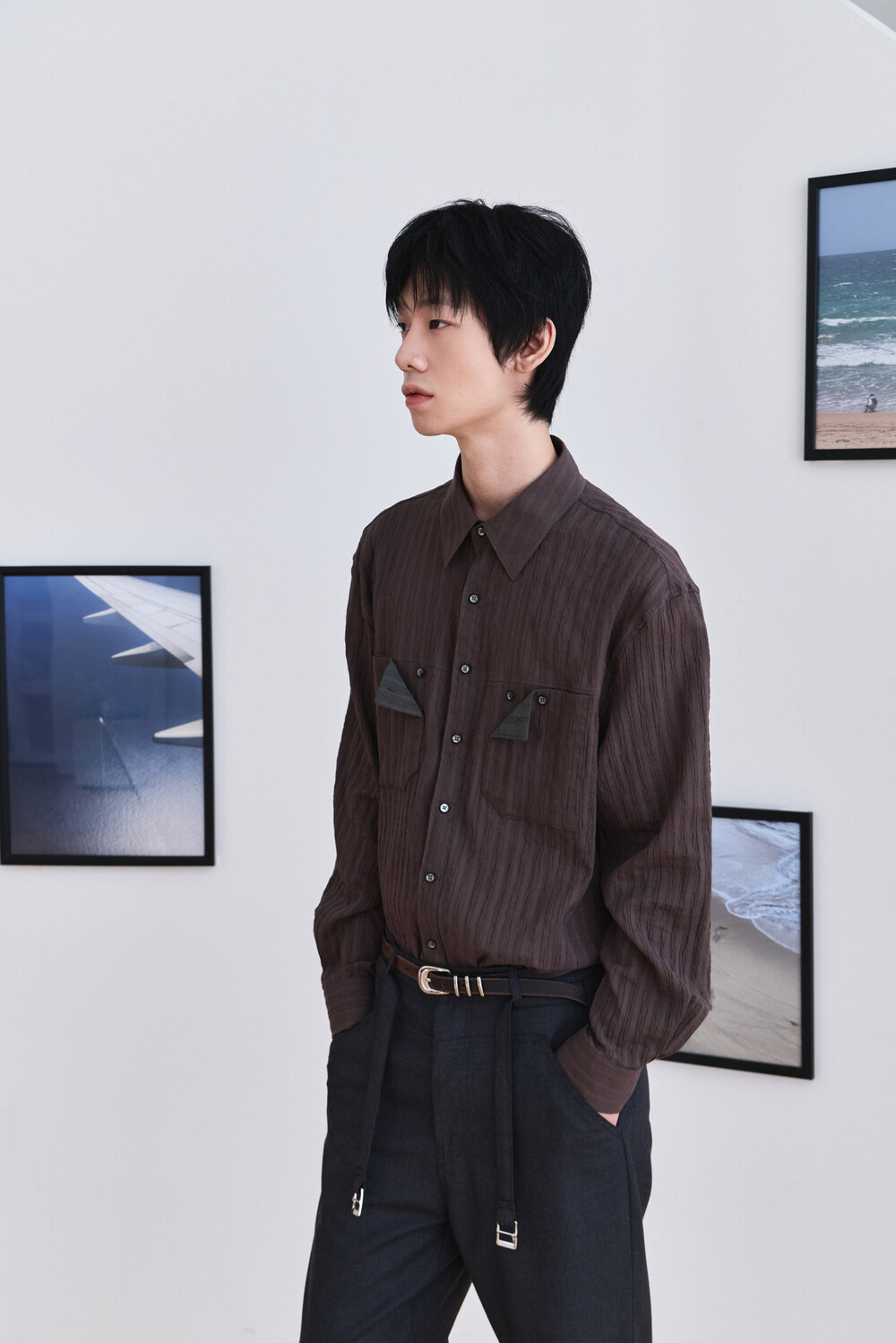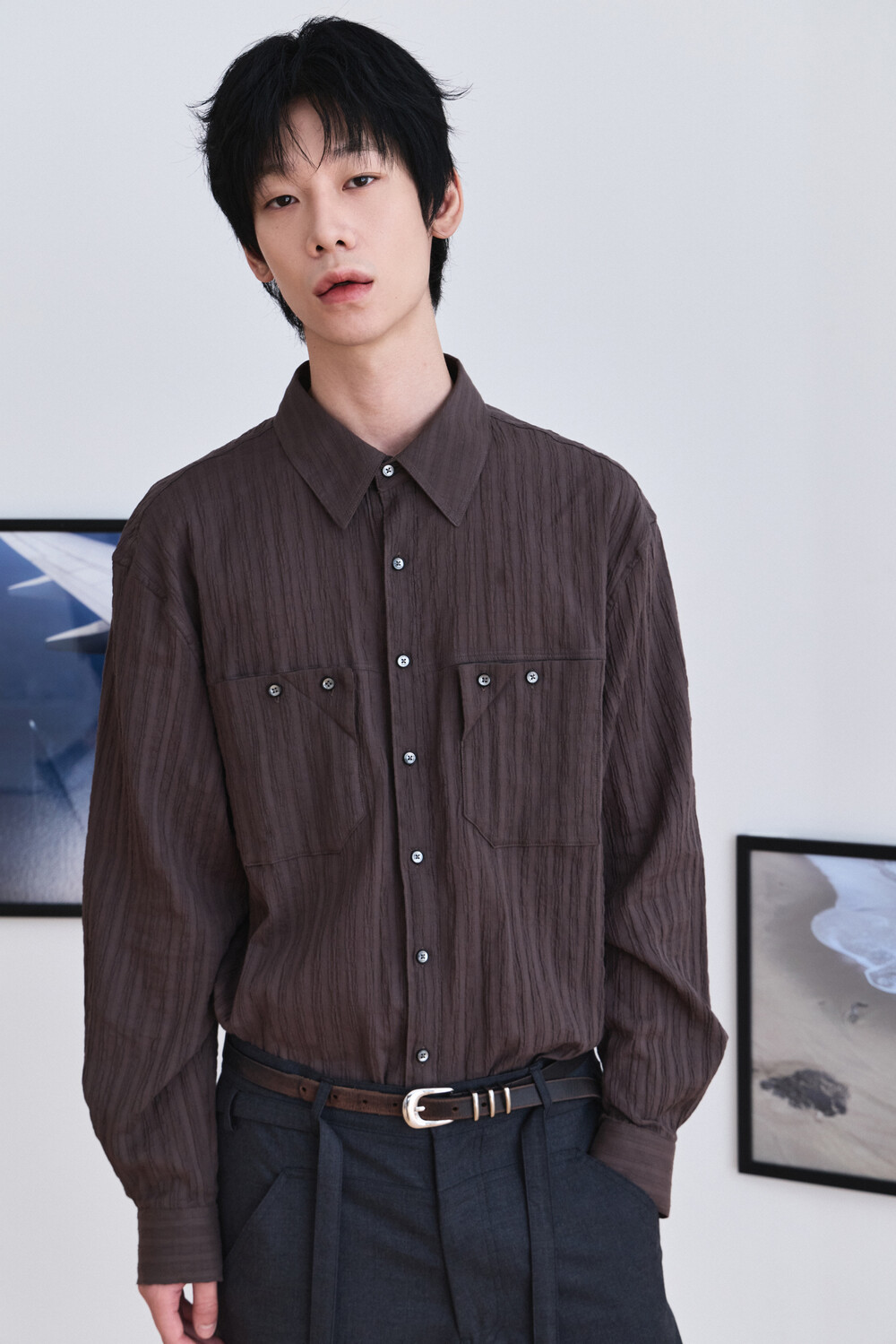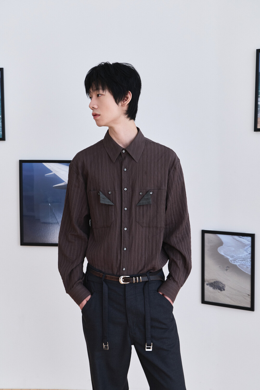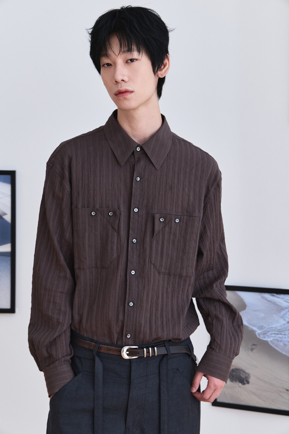 Wrinkle Folded Pocket Shirts - Brown