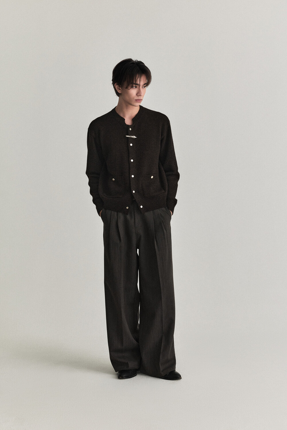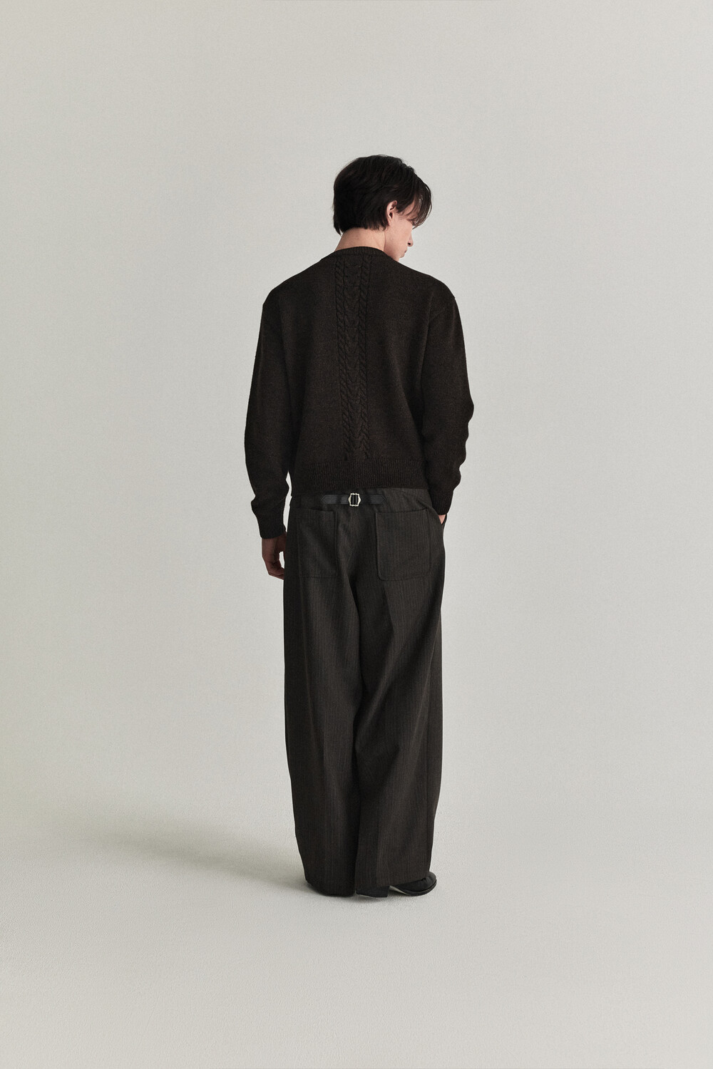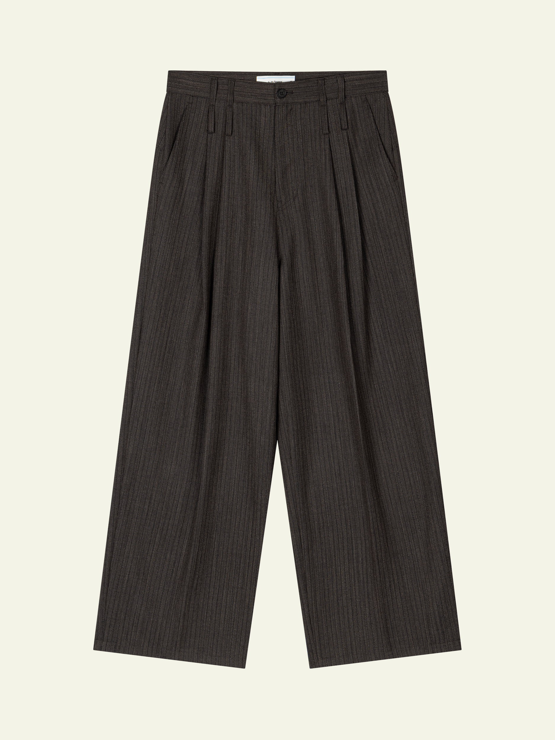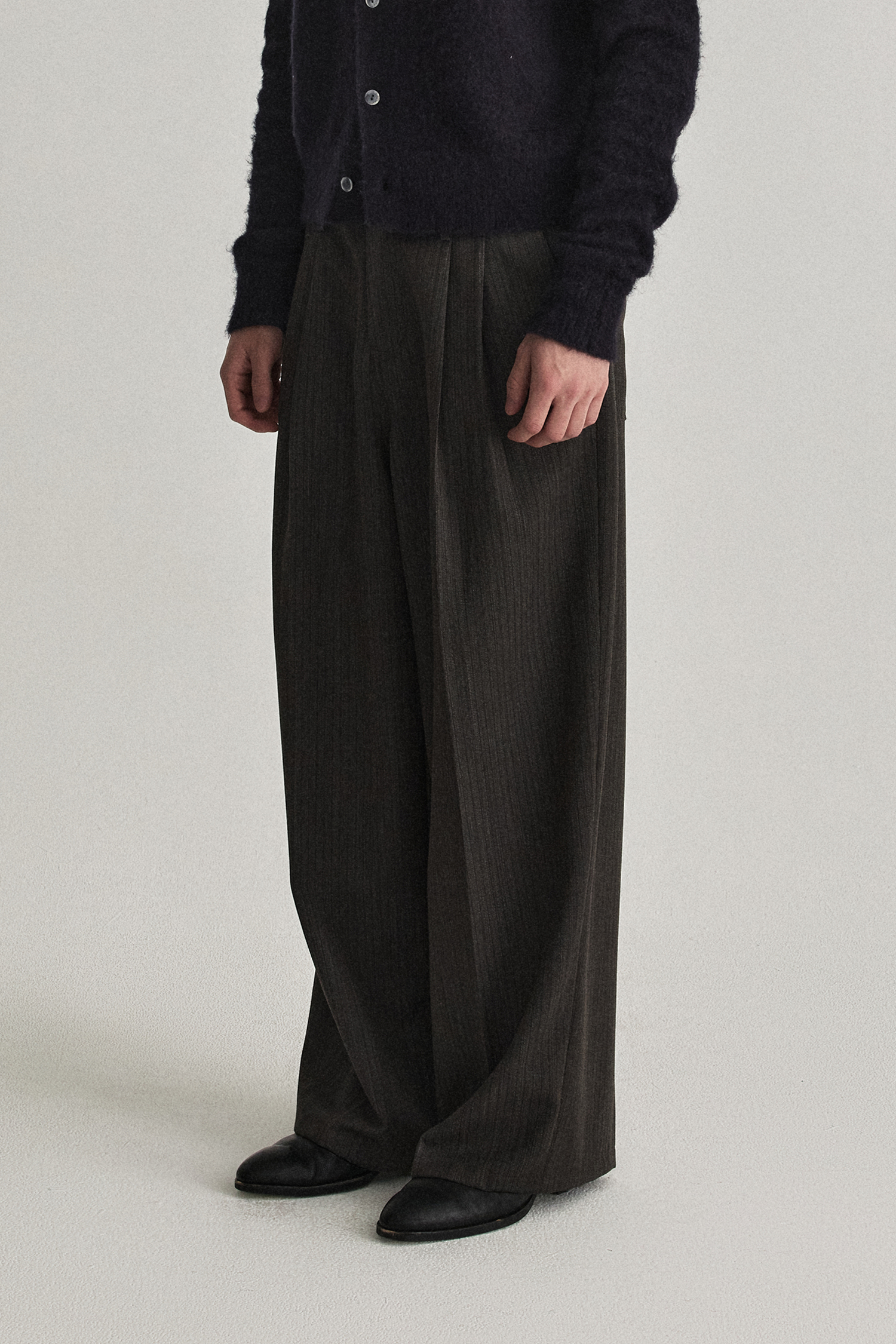 Back Leather Cinch-Back Two Tuck Trousers - Brown Stripe